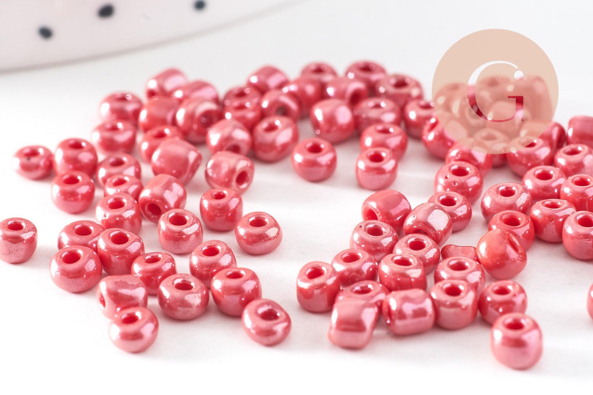 To make all your jewelry, go back to basics with these transparent pink glass seed beads with multicolored reflections.