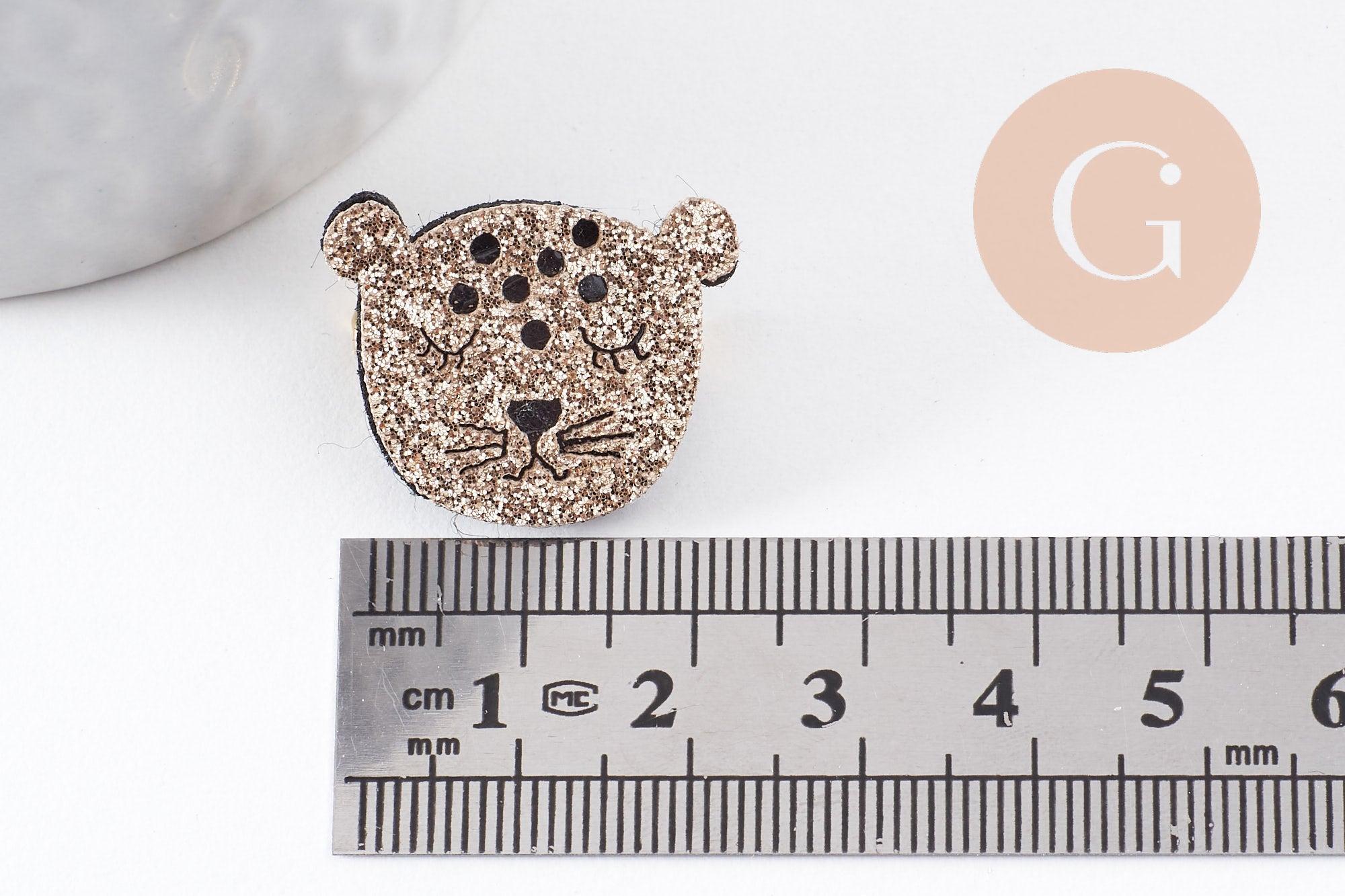 Broche mignonne panthère doré à paillettes 23mm, x1 (G10000)