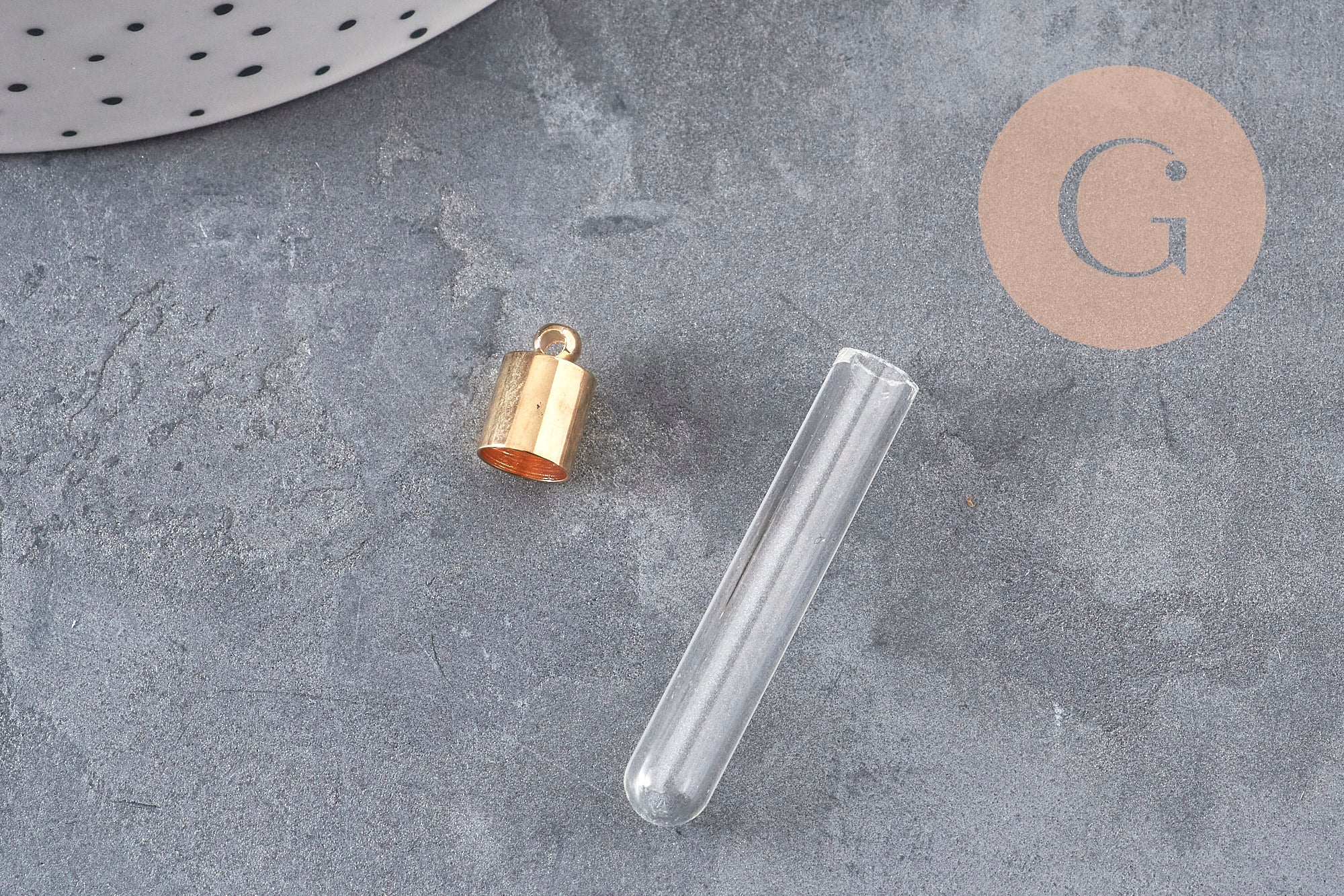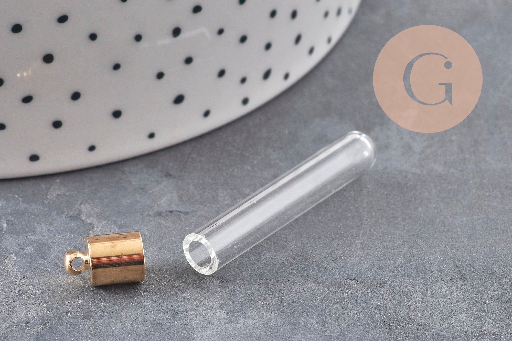 Glass bottle pendant with gold stopper, ideal for creating fine and personalized charm jewelry.