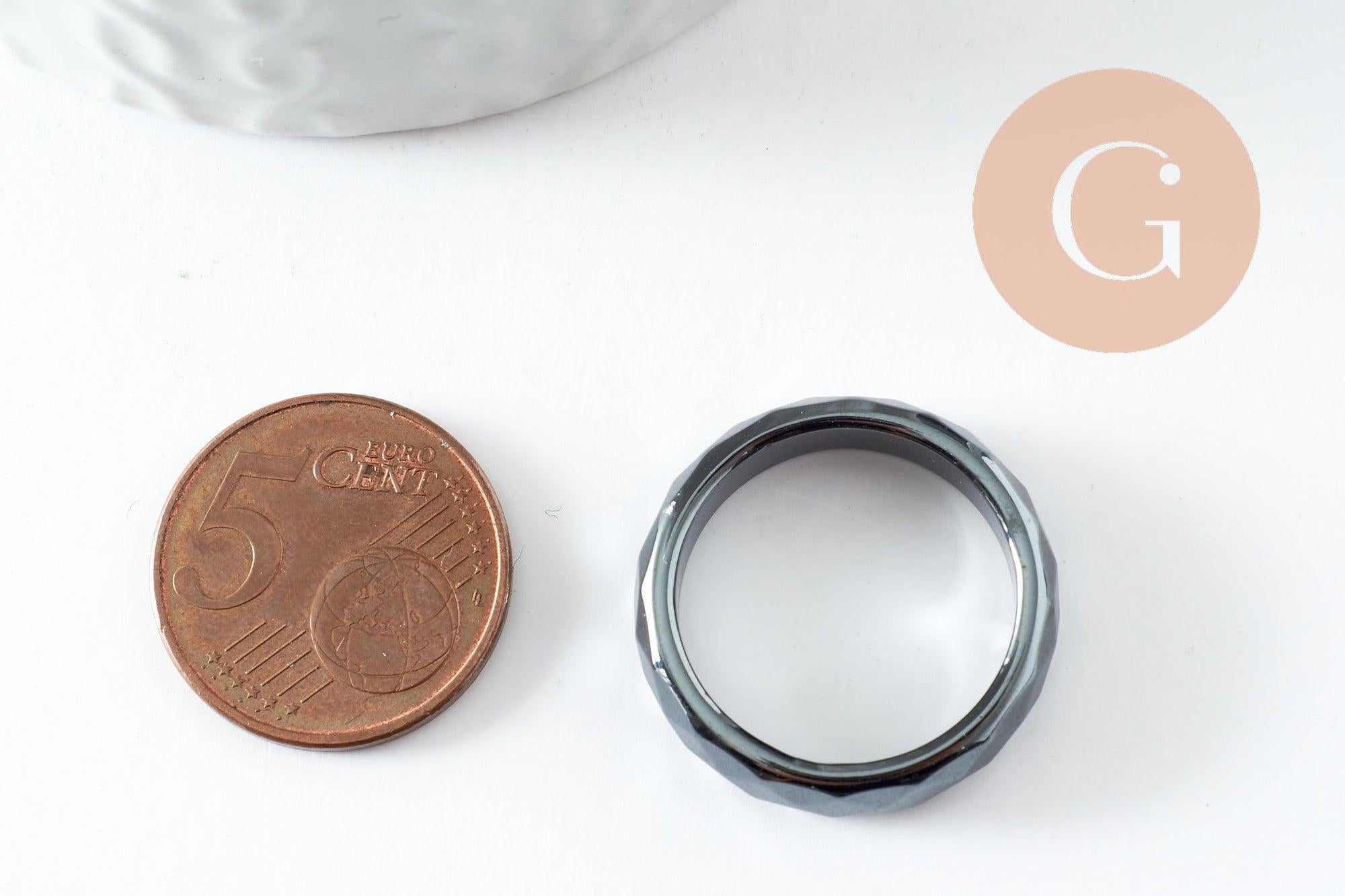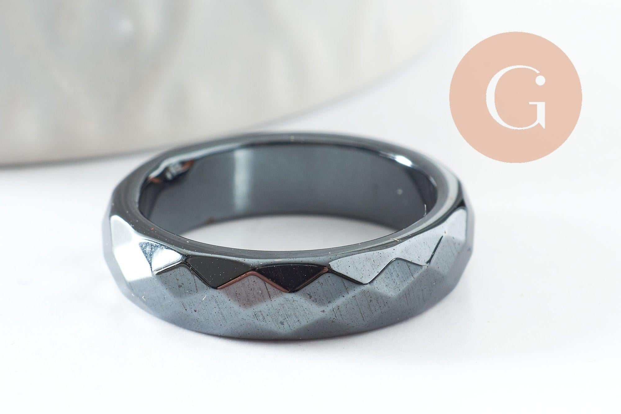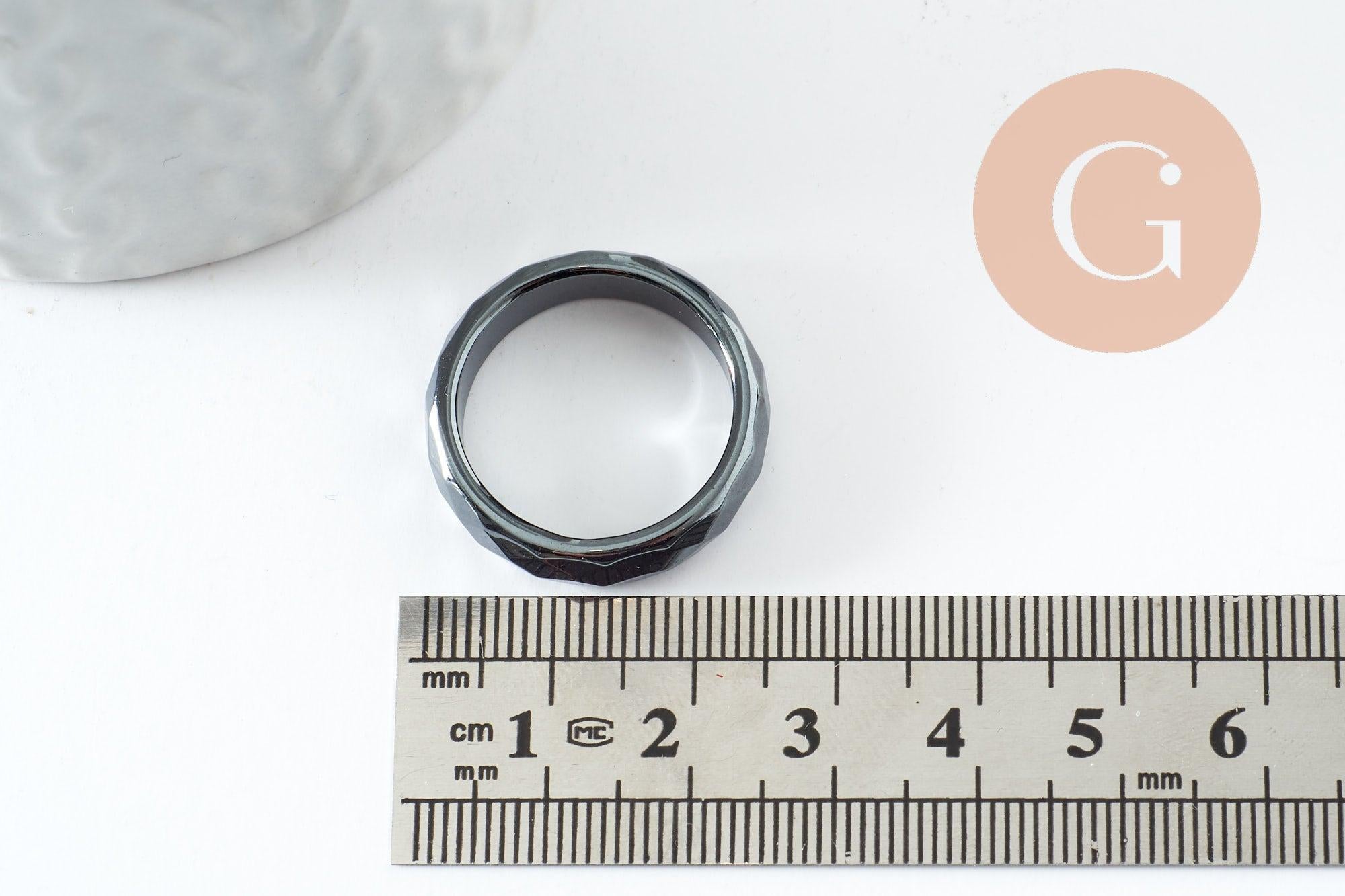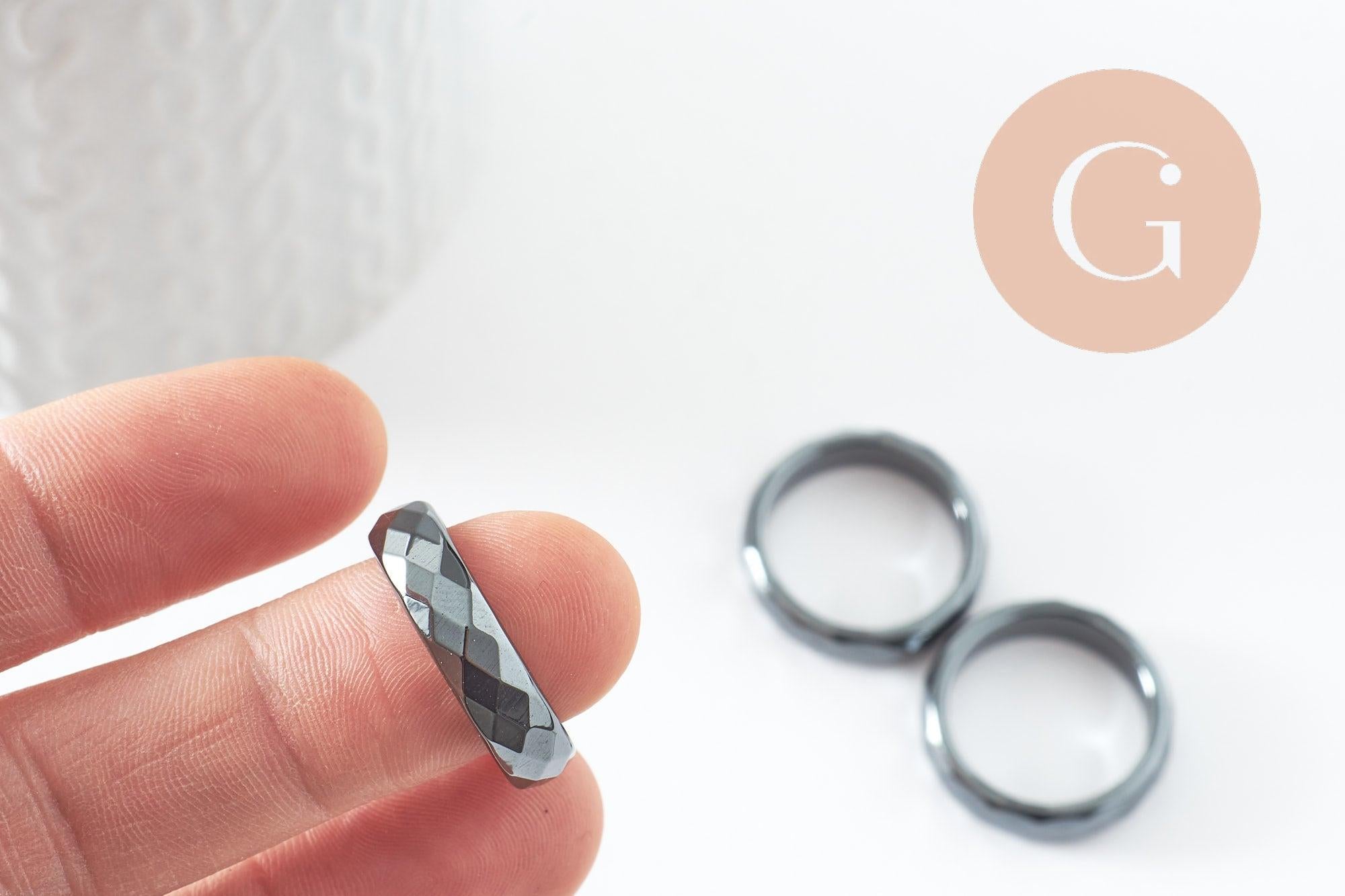 faceted black hematite ring, a classic non-magnetic hematite ring for creating stone jewelry, 21mm, each