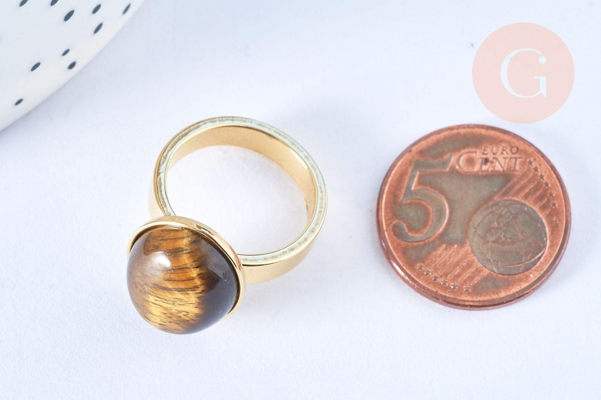 A ring in stainless steel, decorated with a tiger's eye cabochon , natural stone