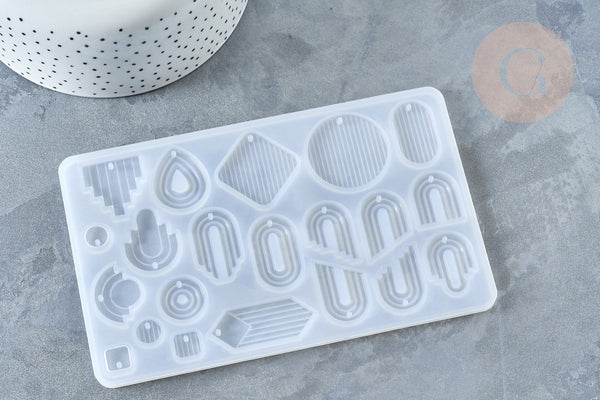A very practical silicone mold for making an infinite number of creoles and resin earrings, with or without inclusions.