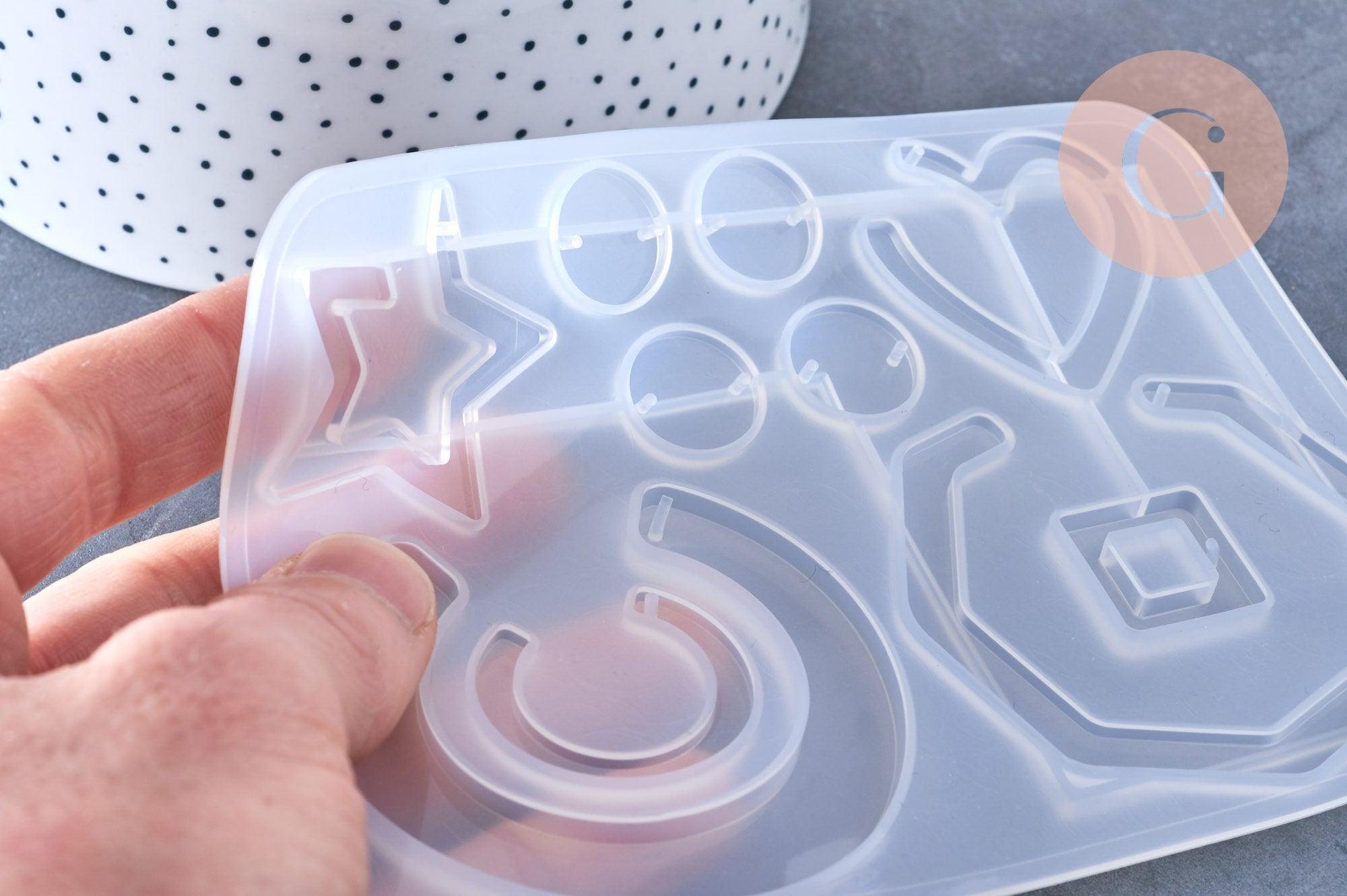 A very practical Circle, heart and hexagon mold to make an infinite number of resin hoops and connectors, with or without inclusions.