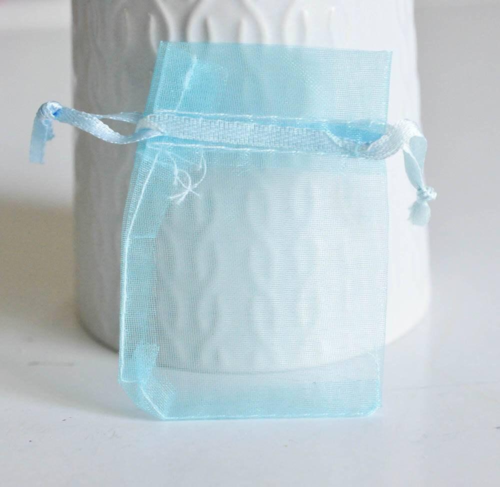 This small turquoise blue organdy pouch can be used as gift packaging or a storage accessory to keep your jewelry protected from humidity Sound closing system will keep them safe quickly Sold empty in packs of 5 Dimensions: Width 4.5-5cm...