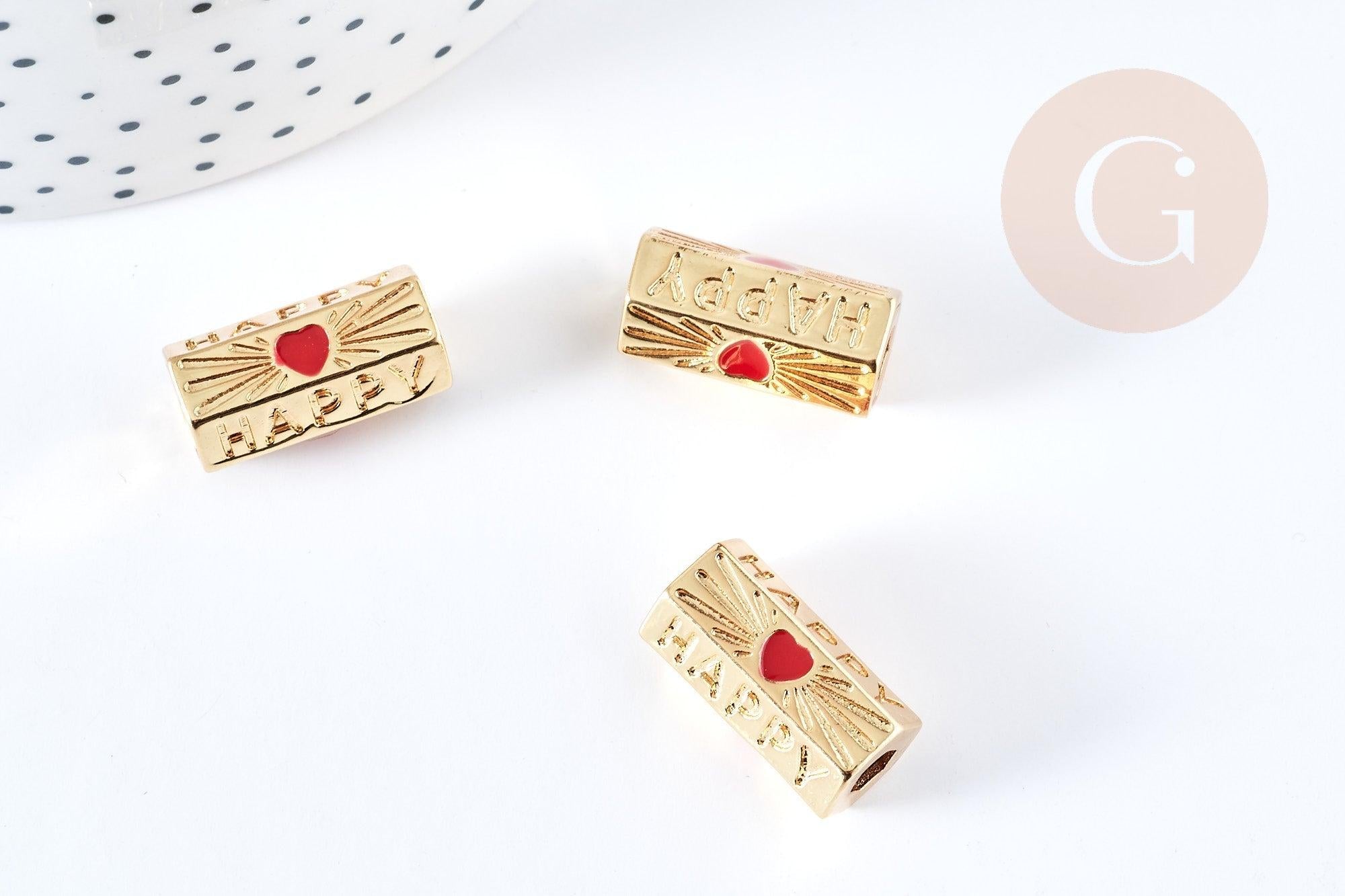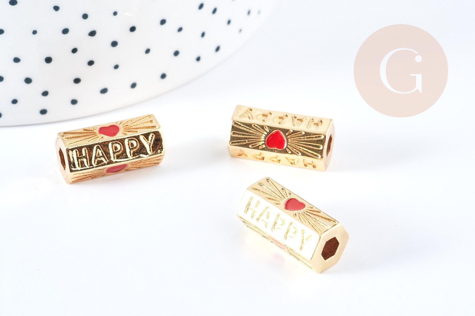 Imagine a personalized DIY piece of jewelry with this tube charm bead decorated with an enameled red heart and a positive message with the engraved word: HAPPY