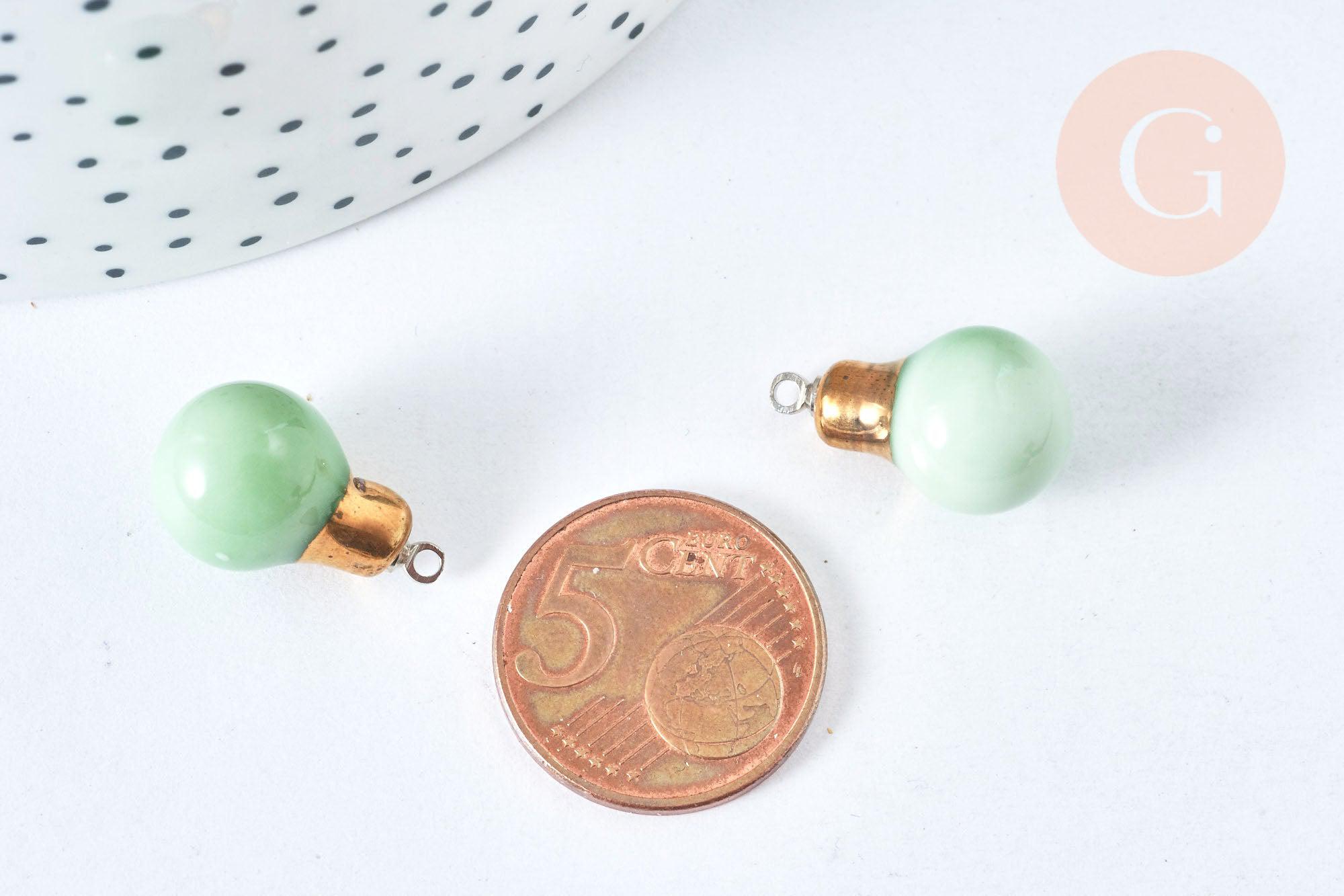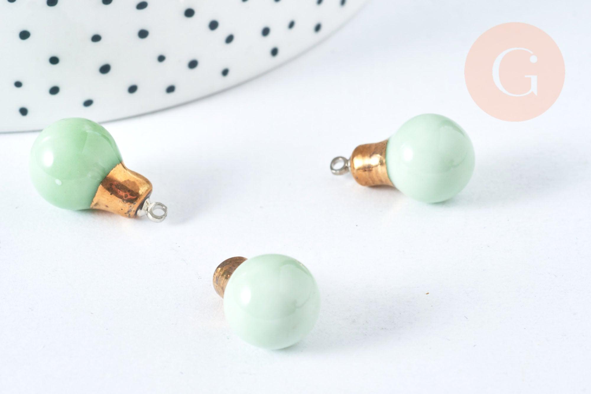 Pendentif ampoule porcelaine émaillé vert et or clair 20mm, pendentif porcelaine géométrique x1 G7146