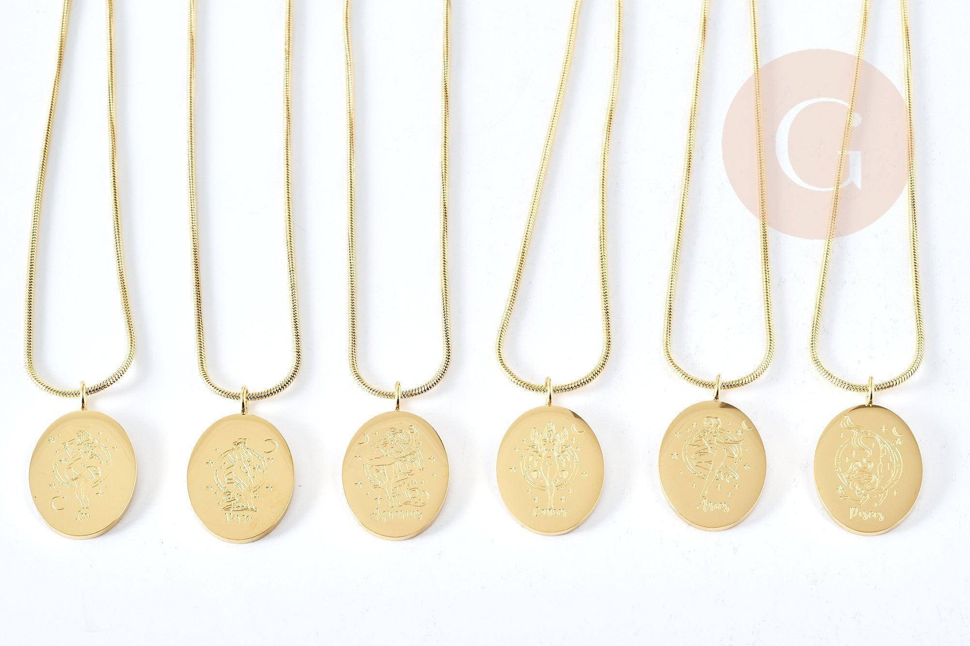 Made from 304 stainless steel , this necklace is resistant to corrosion, fading and rust, making it durable and easy to maintain. The oval engraved medal is decorated with the astrological symbol of your sign.