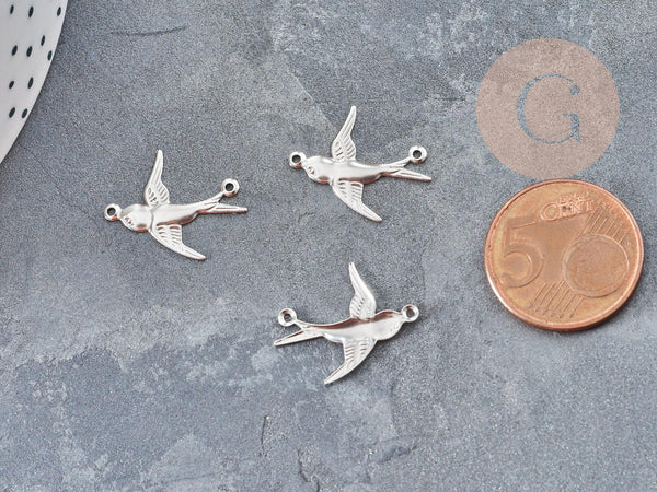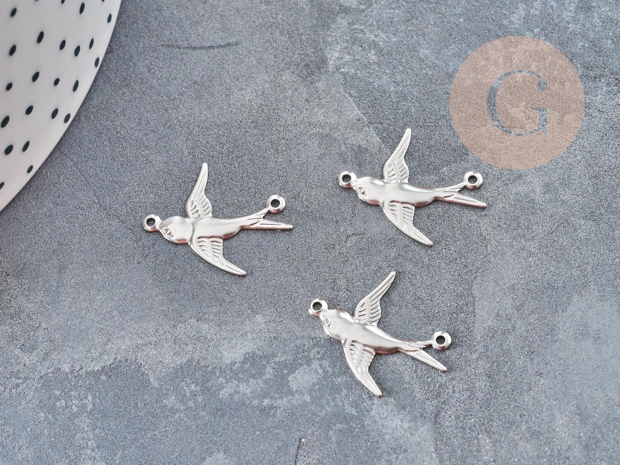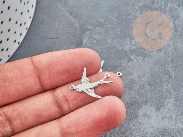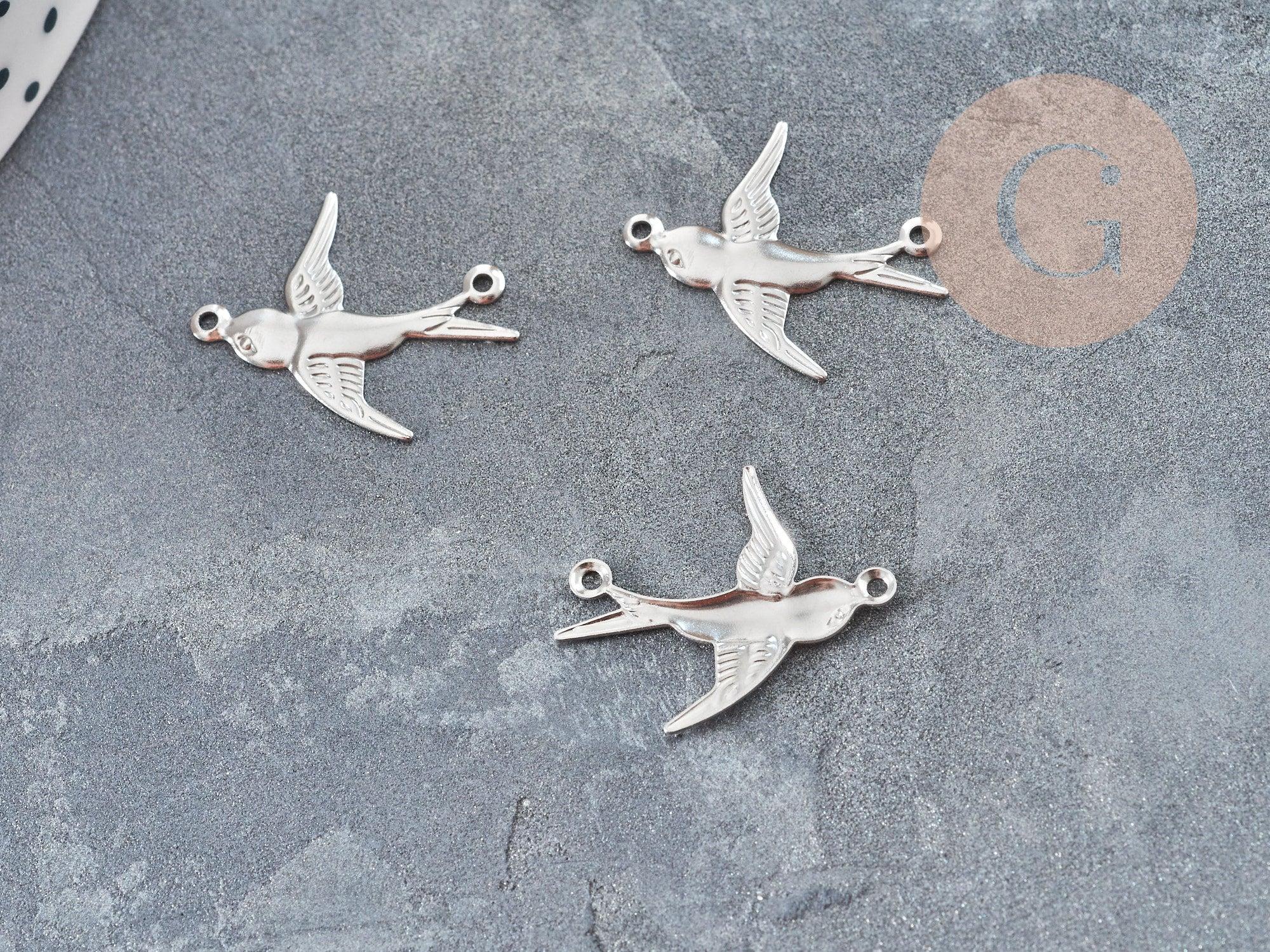 Adopt this swallow connector pendant in silver-plated 201 stainless steel .