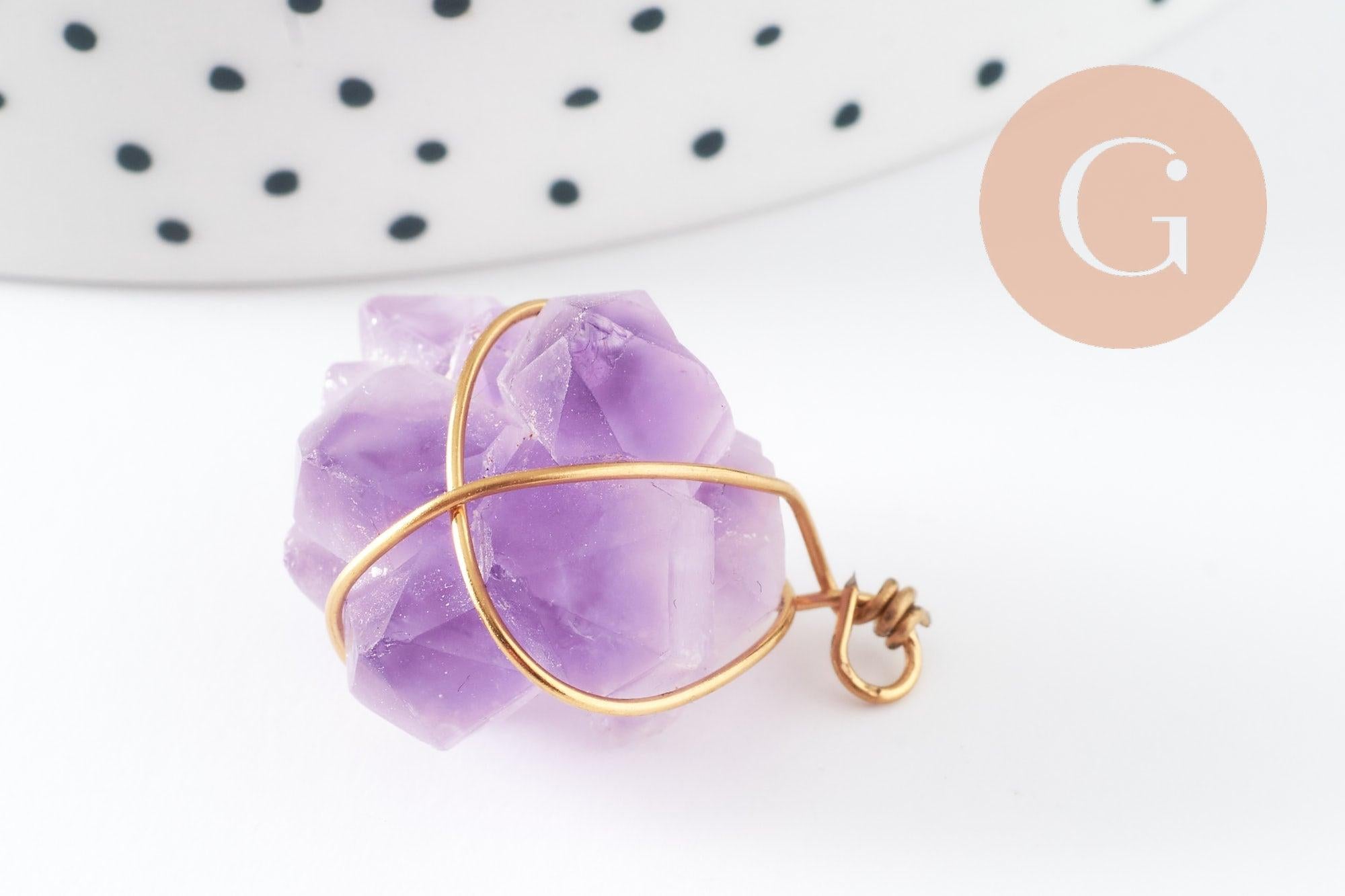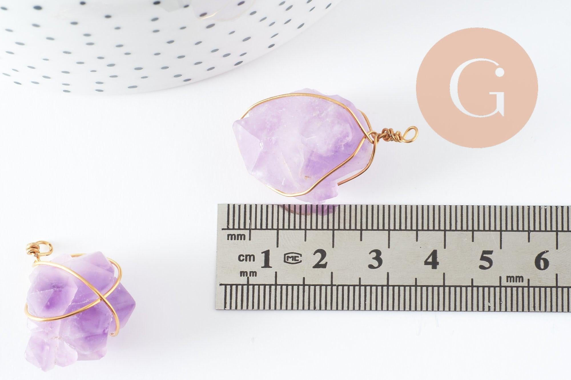 Pendentif Améthyste naturelle pierre brute acier 304 inoxydable doré IP 20~30mm, x1 (G9600)