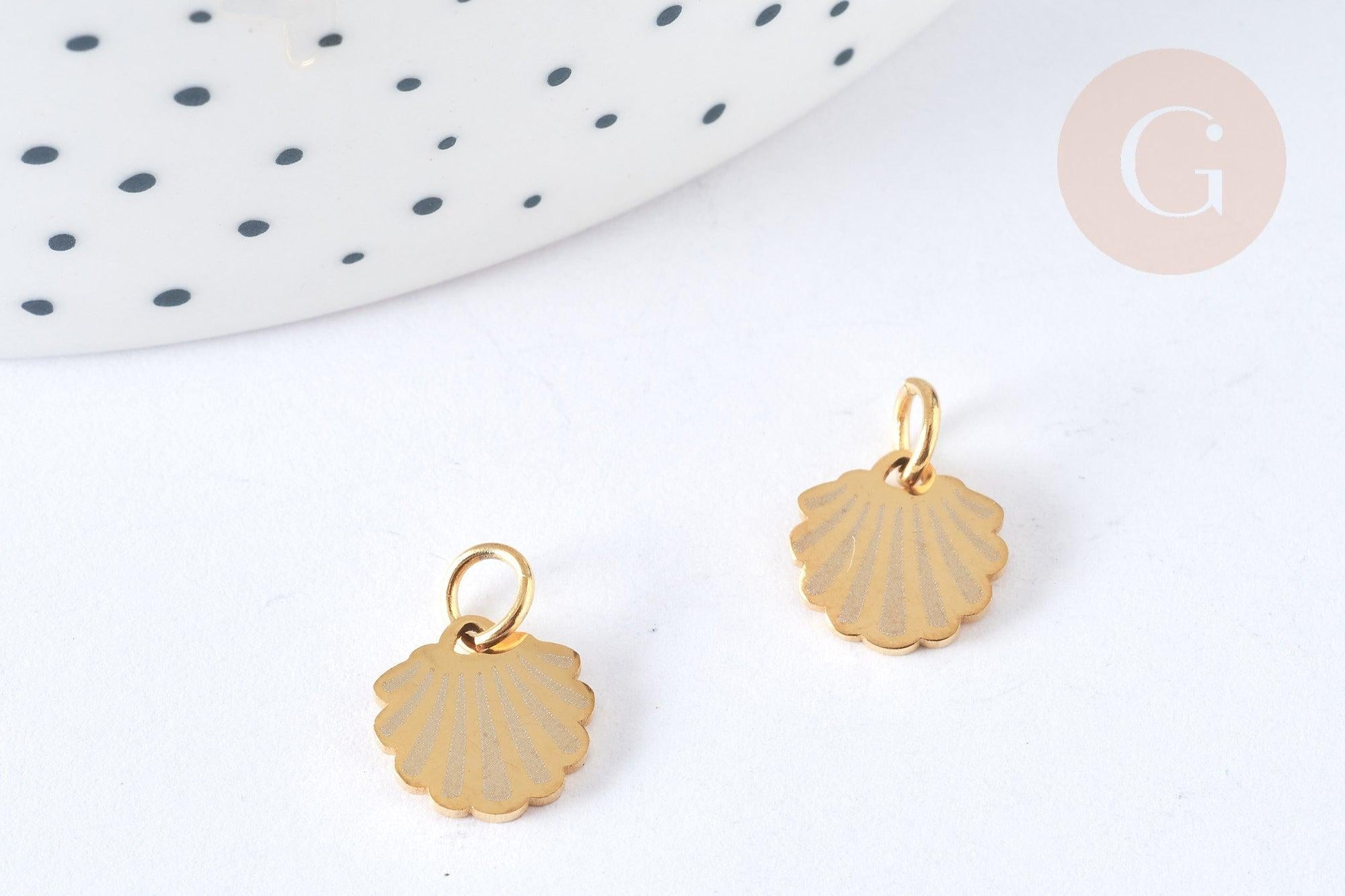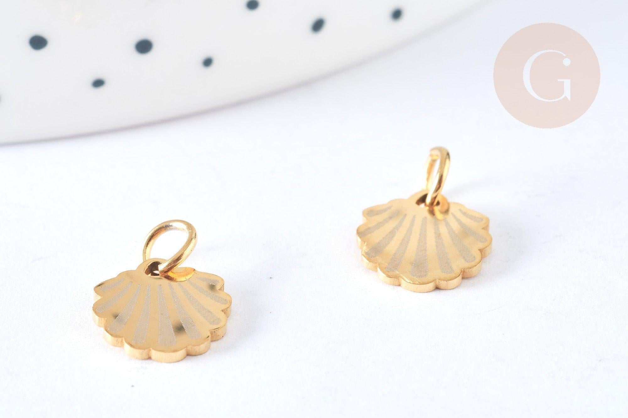 Pendentif breloque coquillage acier 201 doré inoxydable 10mm, x1 (G7316)