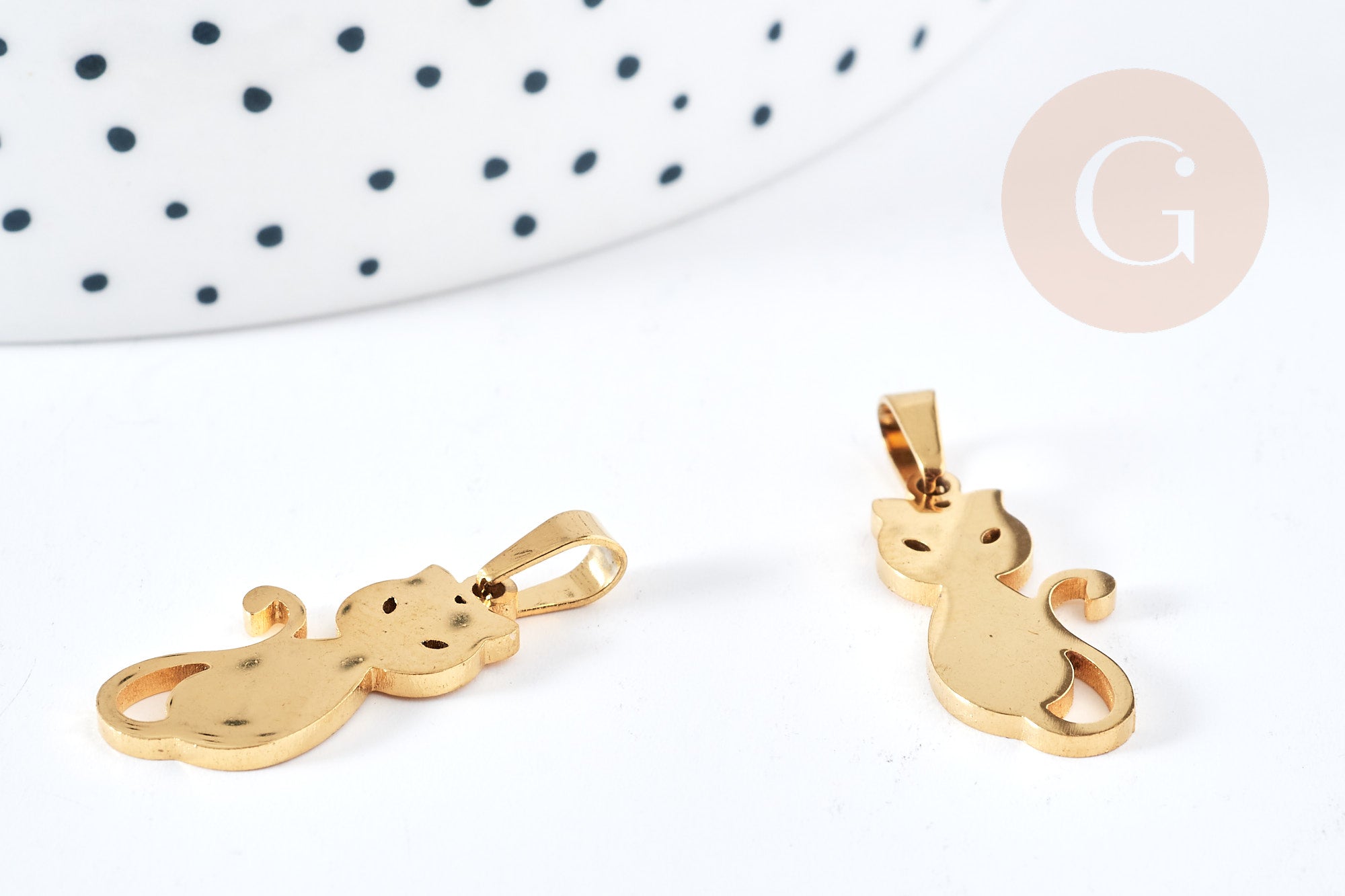 The possibilities are endless, let your creativity run wild to create unique and personalized jewelry with this gold-plated steel cat pendant .