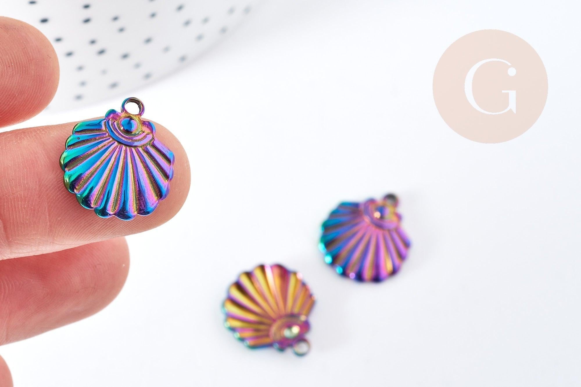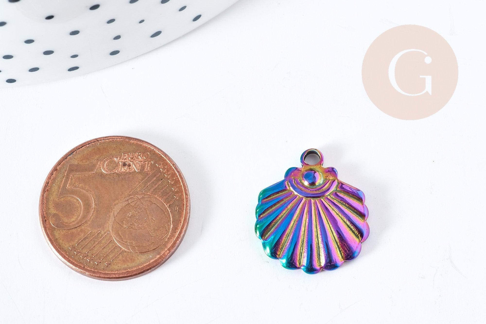 This multicolored iridescent steel shell pendant measures 18mm and will be perfect for all your original and modern jewelry creations.