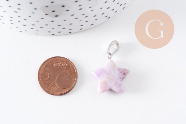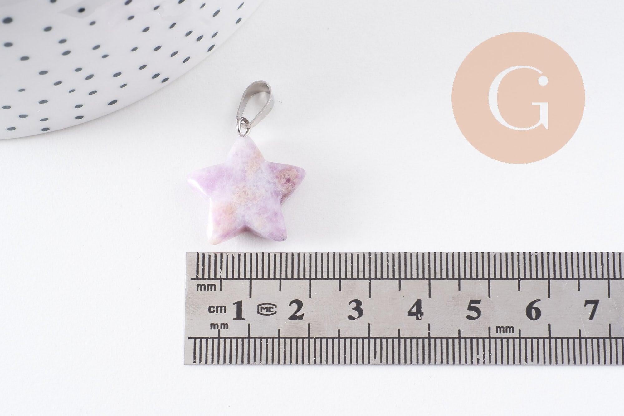 Discover this charming star-shaped pendant, crafted from natural purple lepidolite and mounted on a platinum stainless steel bail.