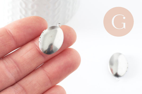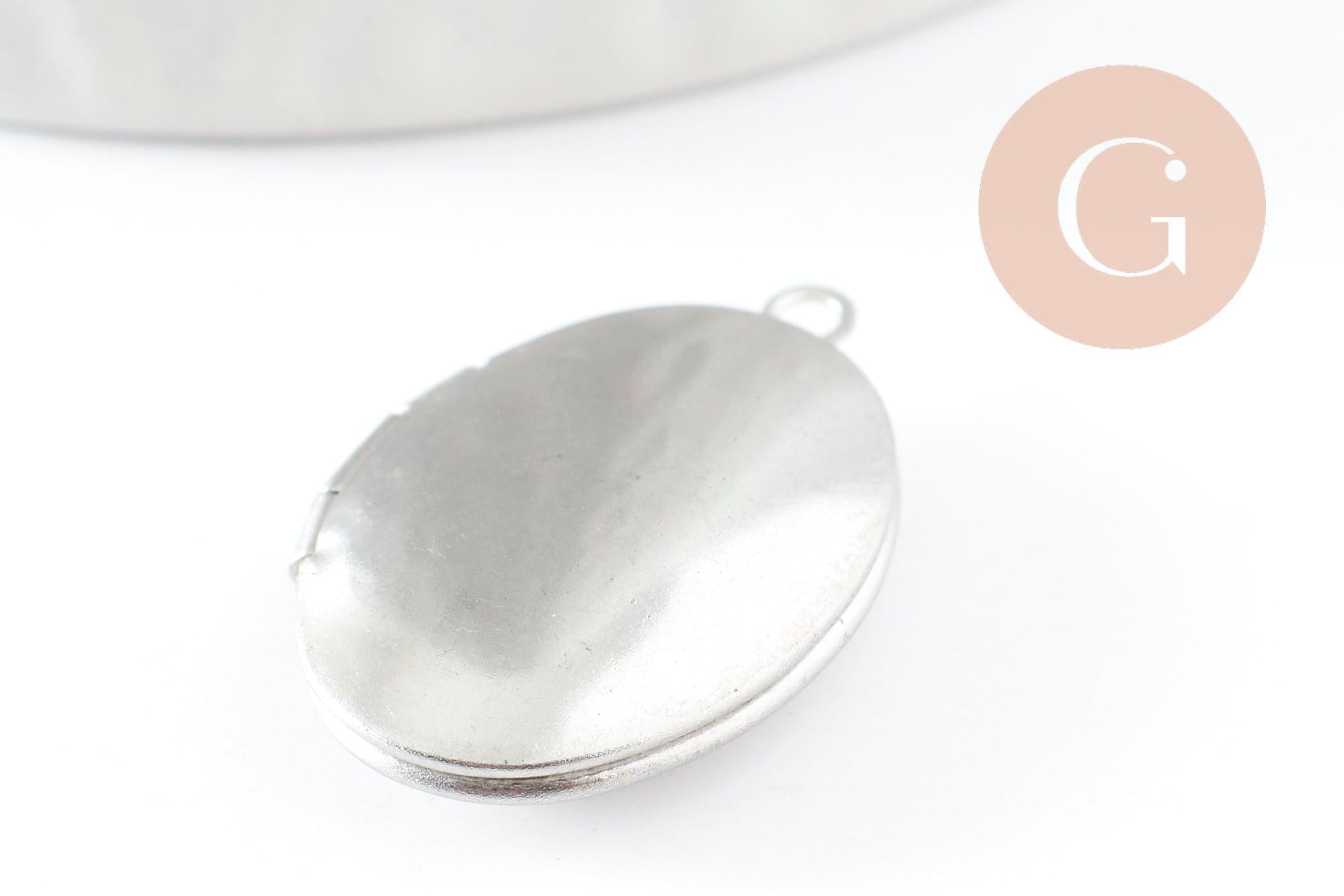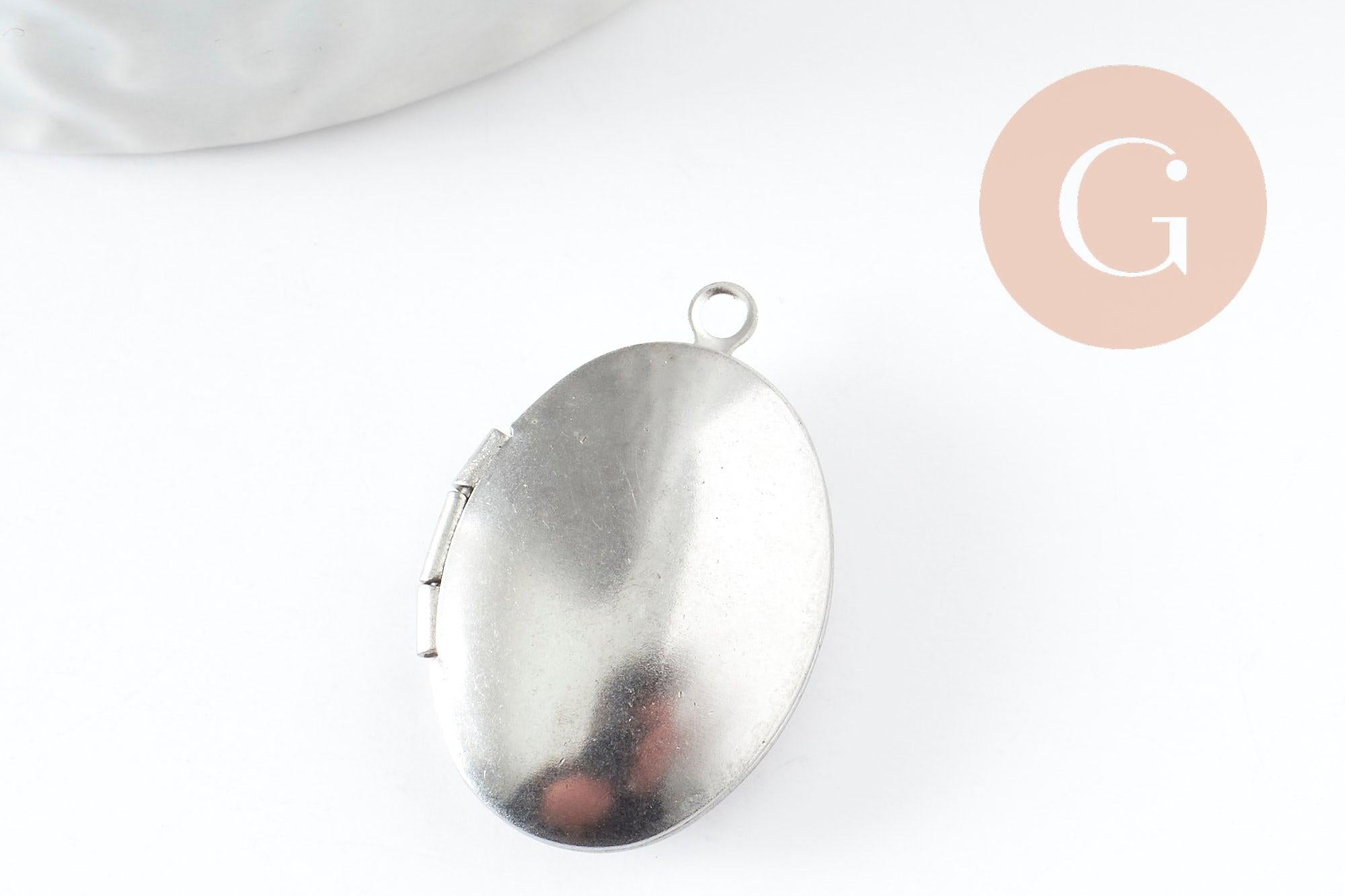 Make a unique necklace with this oval locket pendant in platinum-colored 316 stainless steel