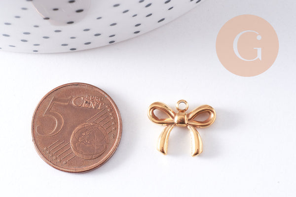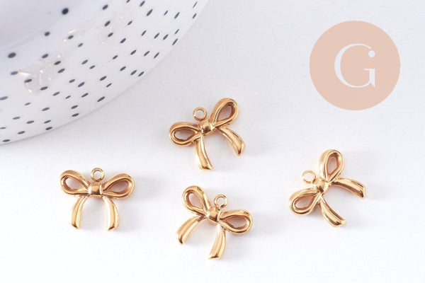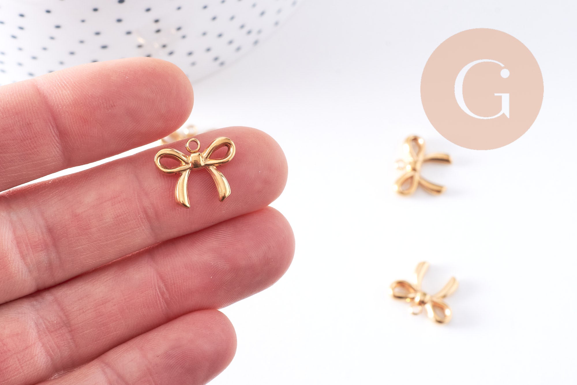 Add a refined and feminine touch to your DIY creations with this 304 stainless steel bow tie pendant , plated with 18-carat gold using the PVD process. Finely crafted, it combines elegance and strength for jewelry that is both delicate and durable.