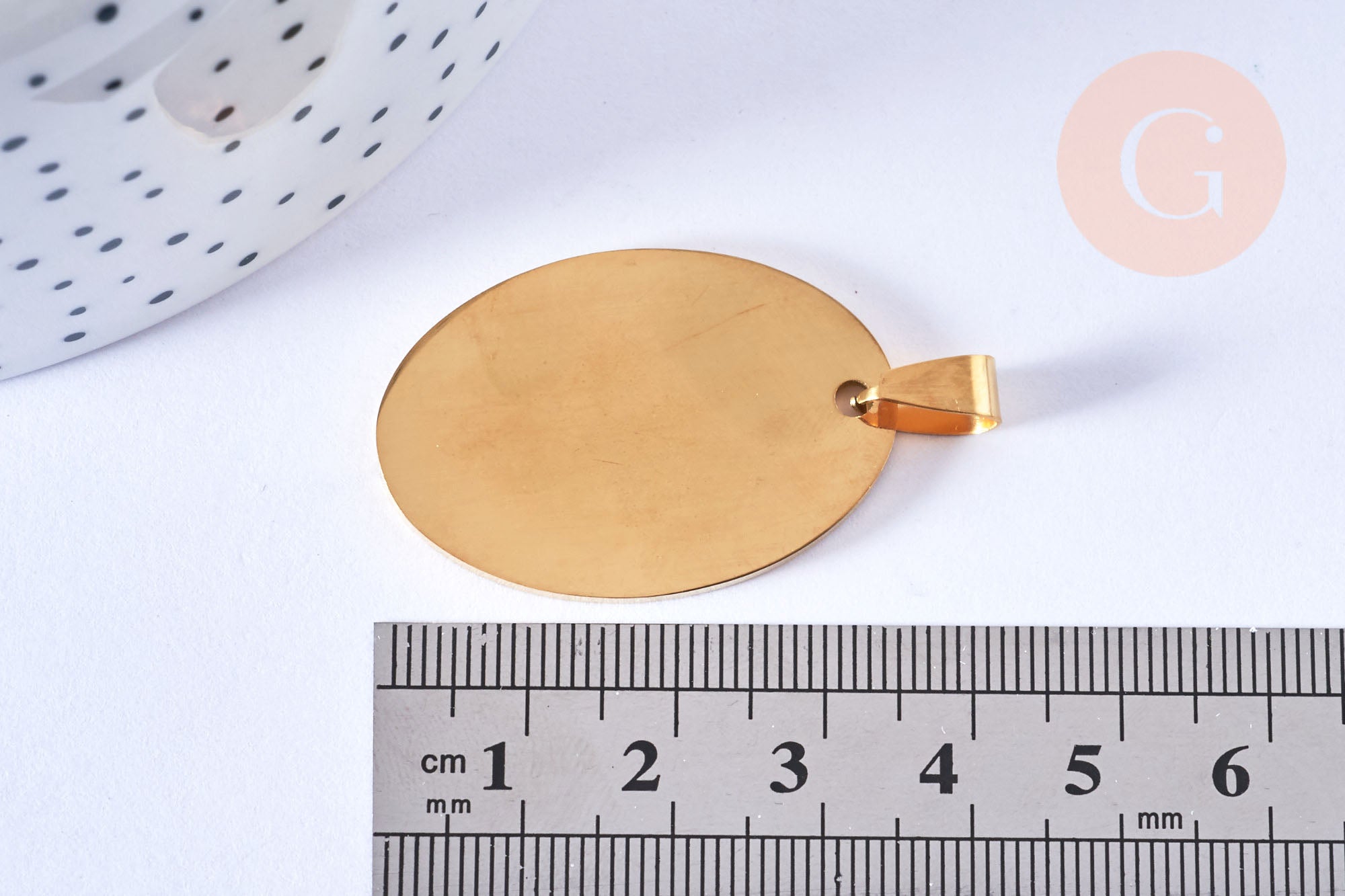 An oval-shaped stainless steel gold pendant is ideal for your DIY creations . A gold pendant to use for your personalized creations , to be engraved for a special occasion.