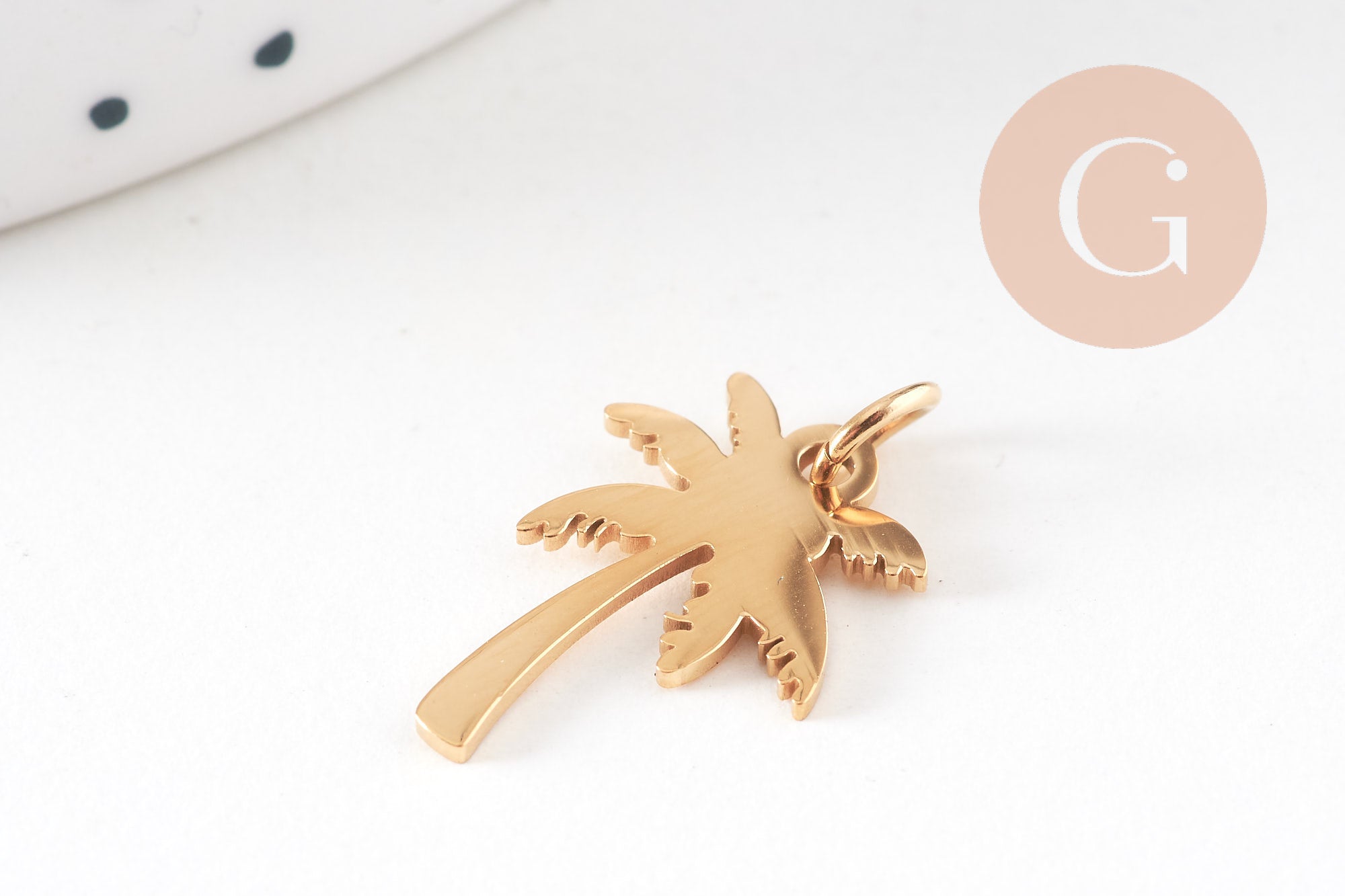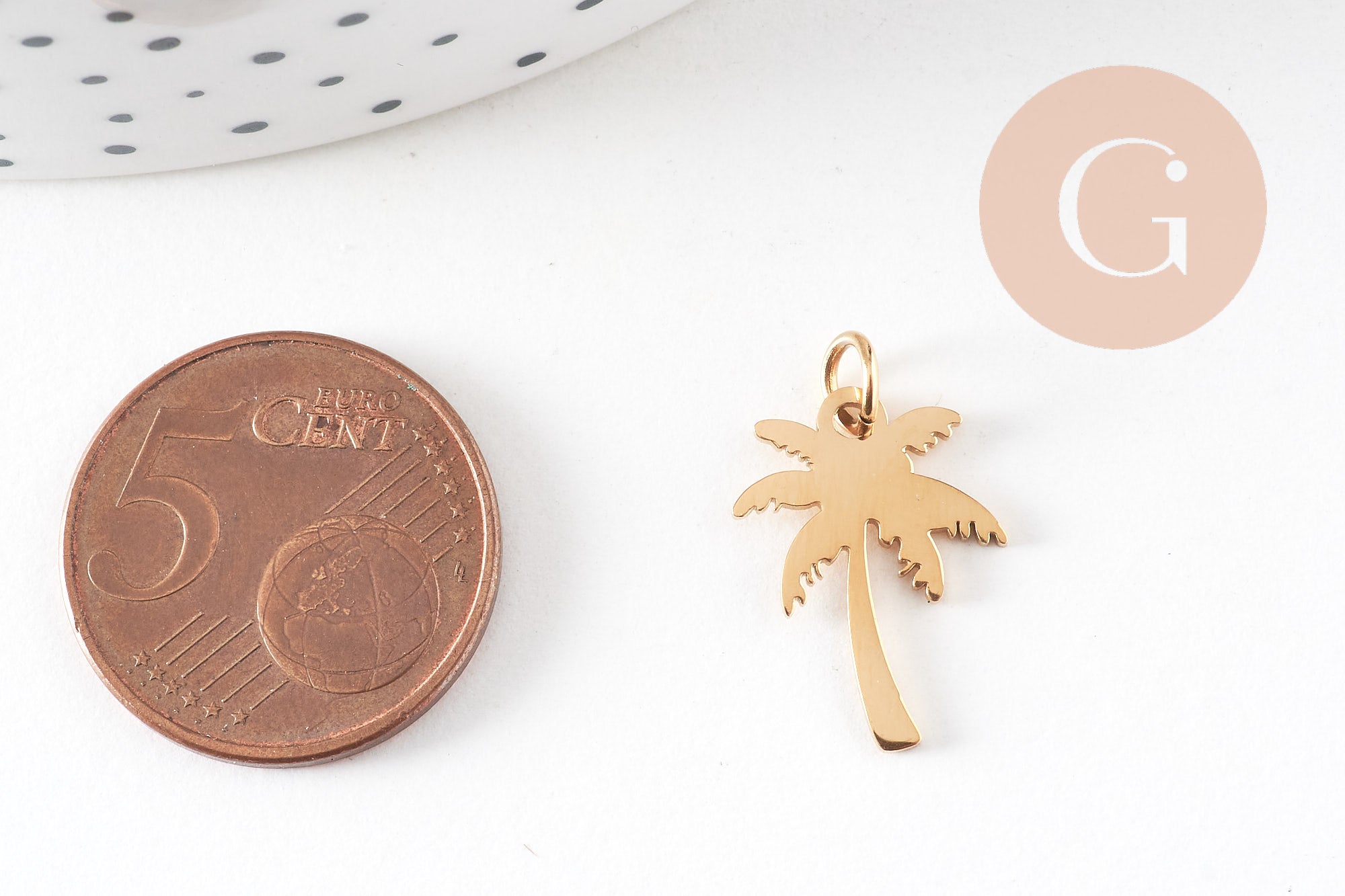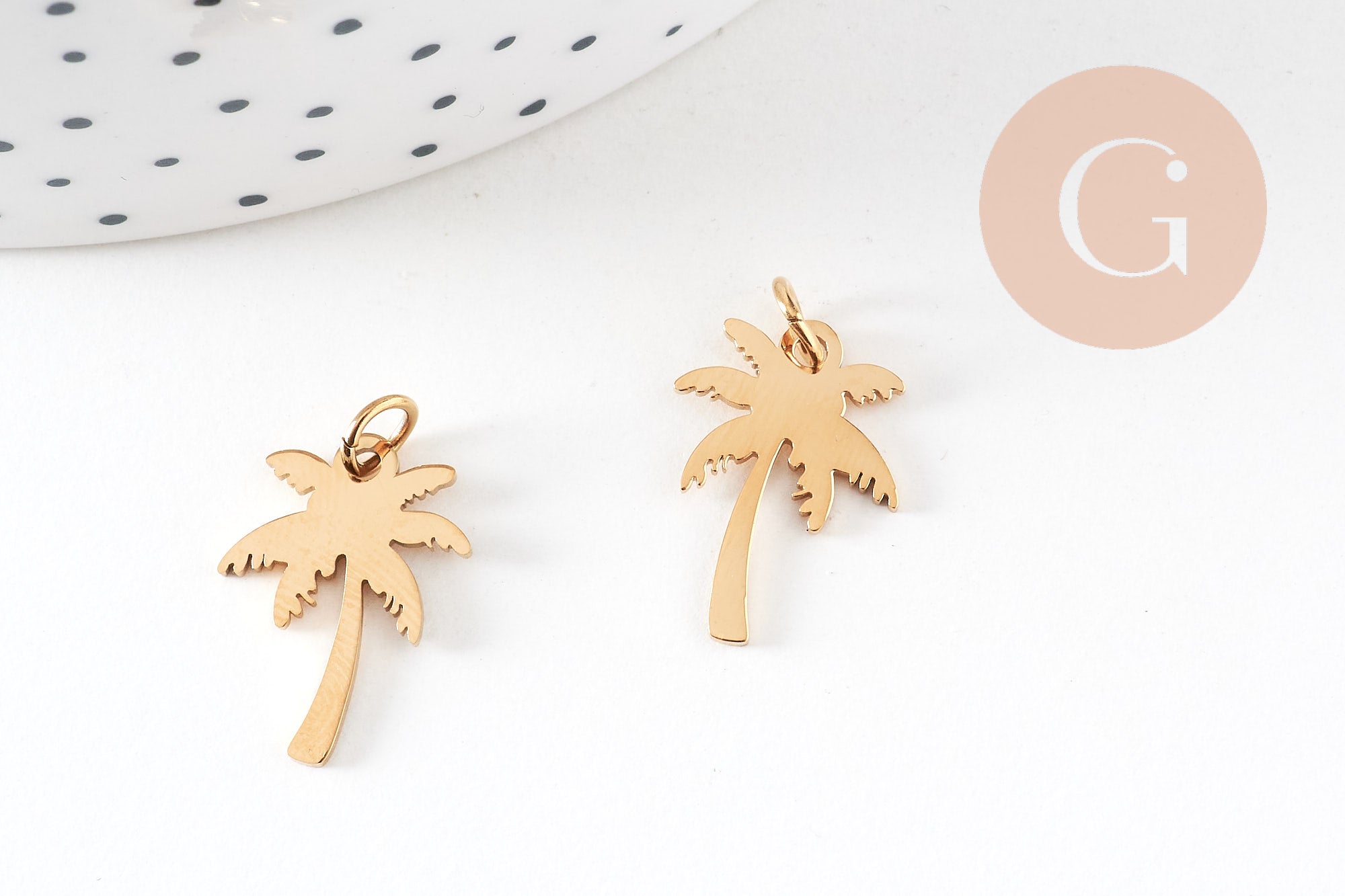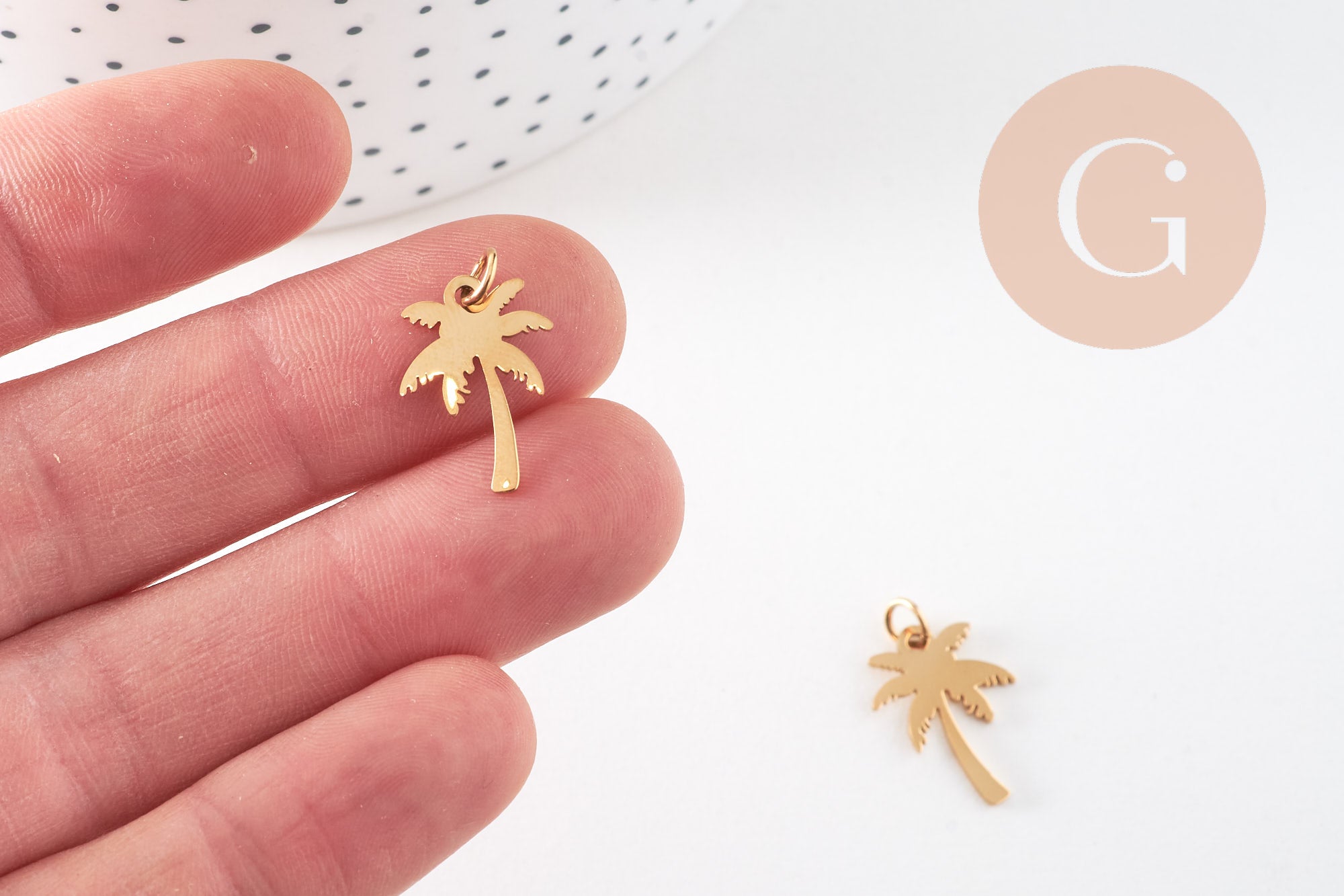 Bring an exotic and summery touch to your creations with this palm tree pendant in 18K gold-plated stainless steel (IP) . A symbol of escape and sunshine, it is perfect for creating bright and trendy summer jewelry.