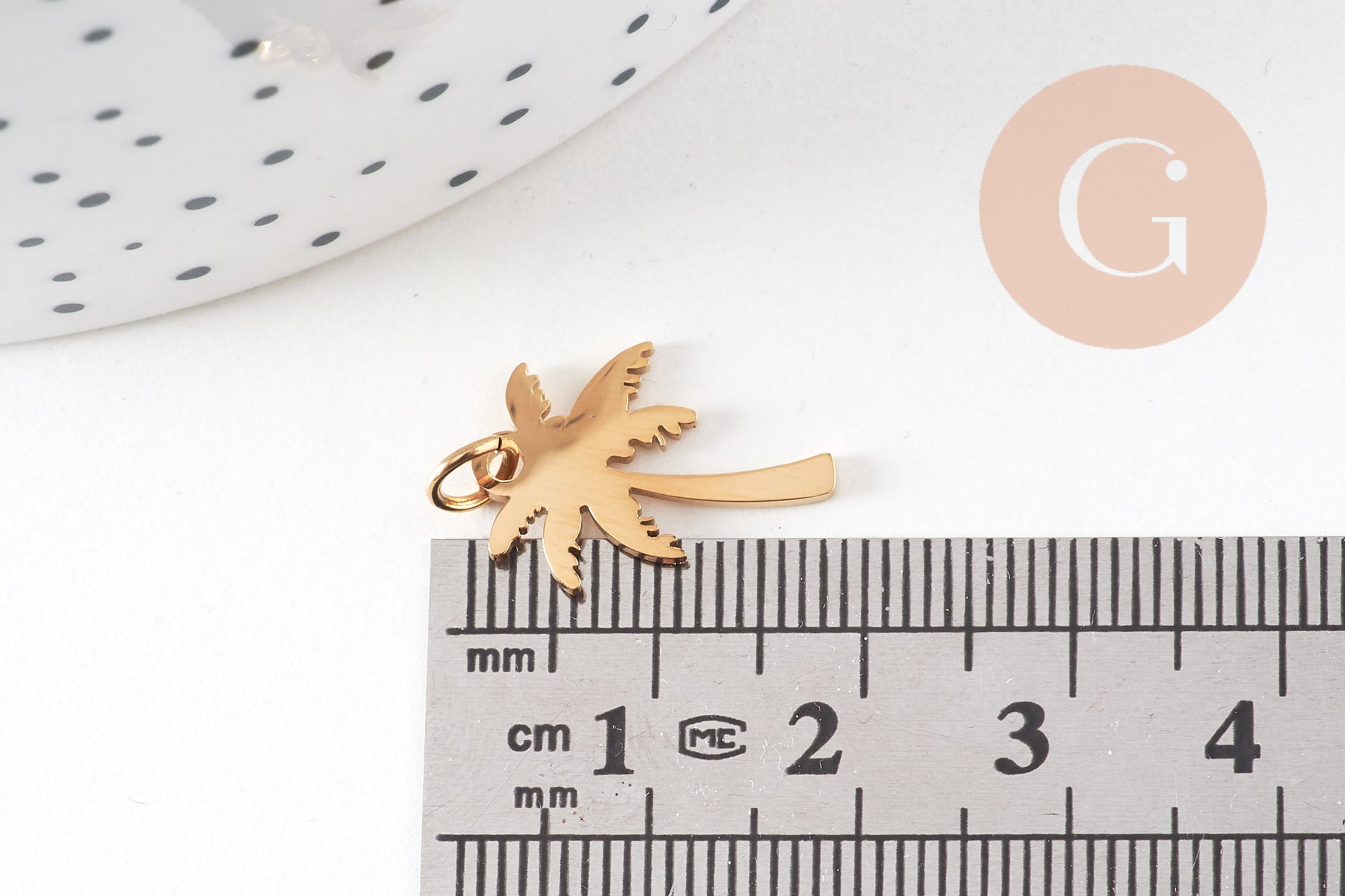Pendentif palmier acier 304 inoxydable doré IP 17mm, x1 (G10833)
