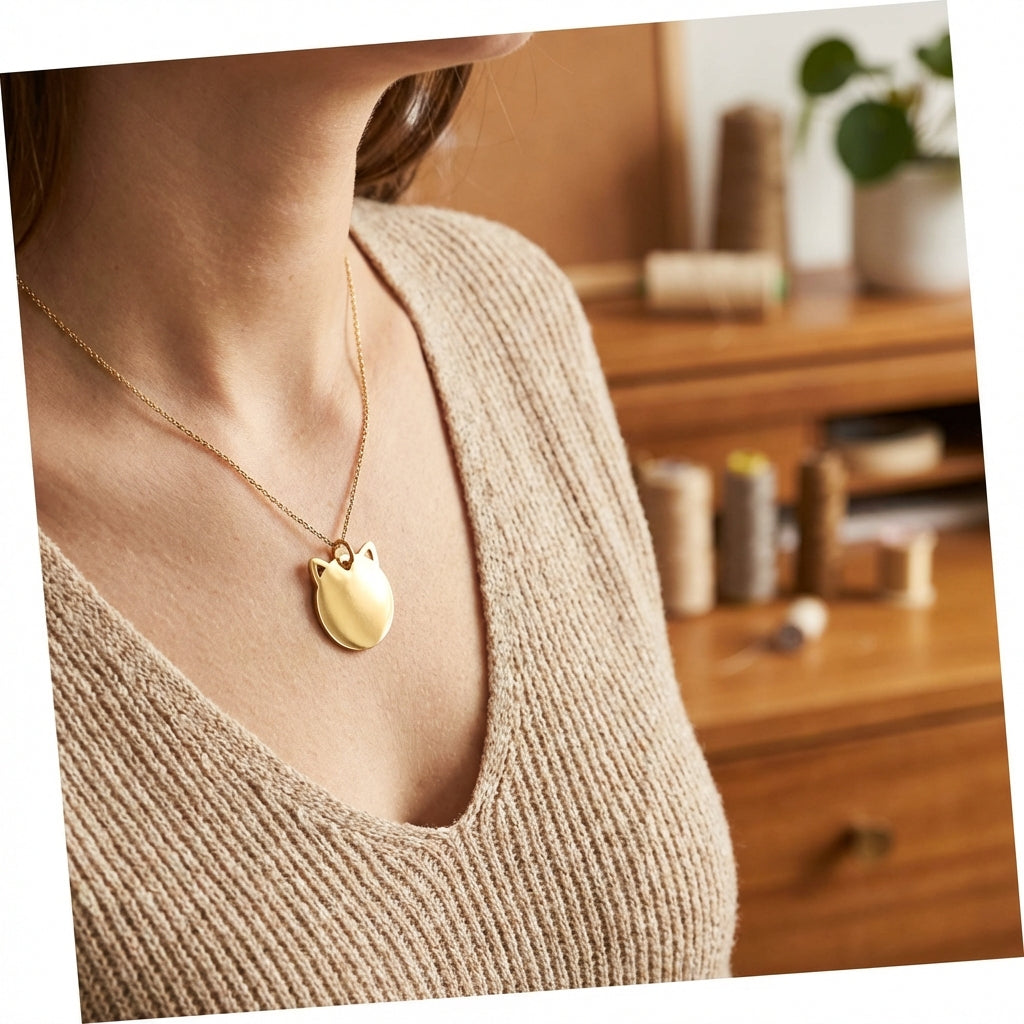 Graphic and full of character, this gold-plated 201 stainless steel cat head pendant captivates with its generous size and clean design. A symbol of independence, mystery, and intuition, the cat makes a striking statement here, perfect for DIY jewelry creations with a bold style. Its smooth surface allows for personalization through engraving , creating a unique and meaningful piece of jewelry.