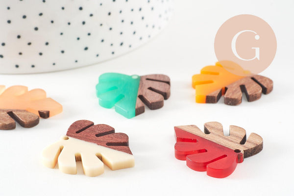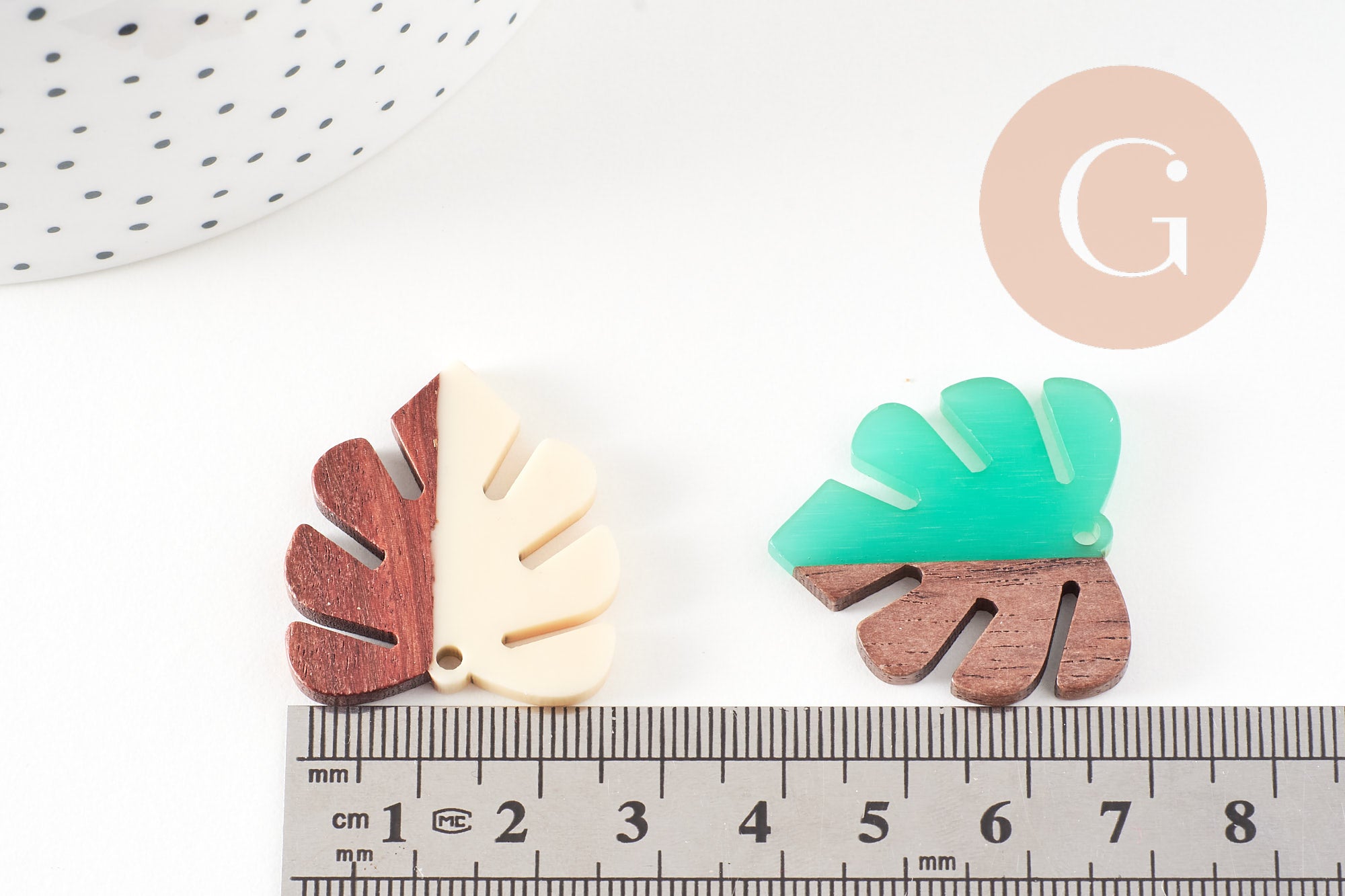 multicolor resin wood disc pendant, natural wood, plant pendant, wooden jewelry creation, 18mm, x5 G4873