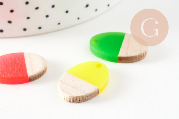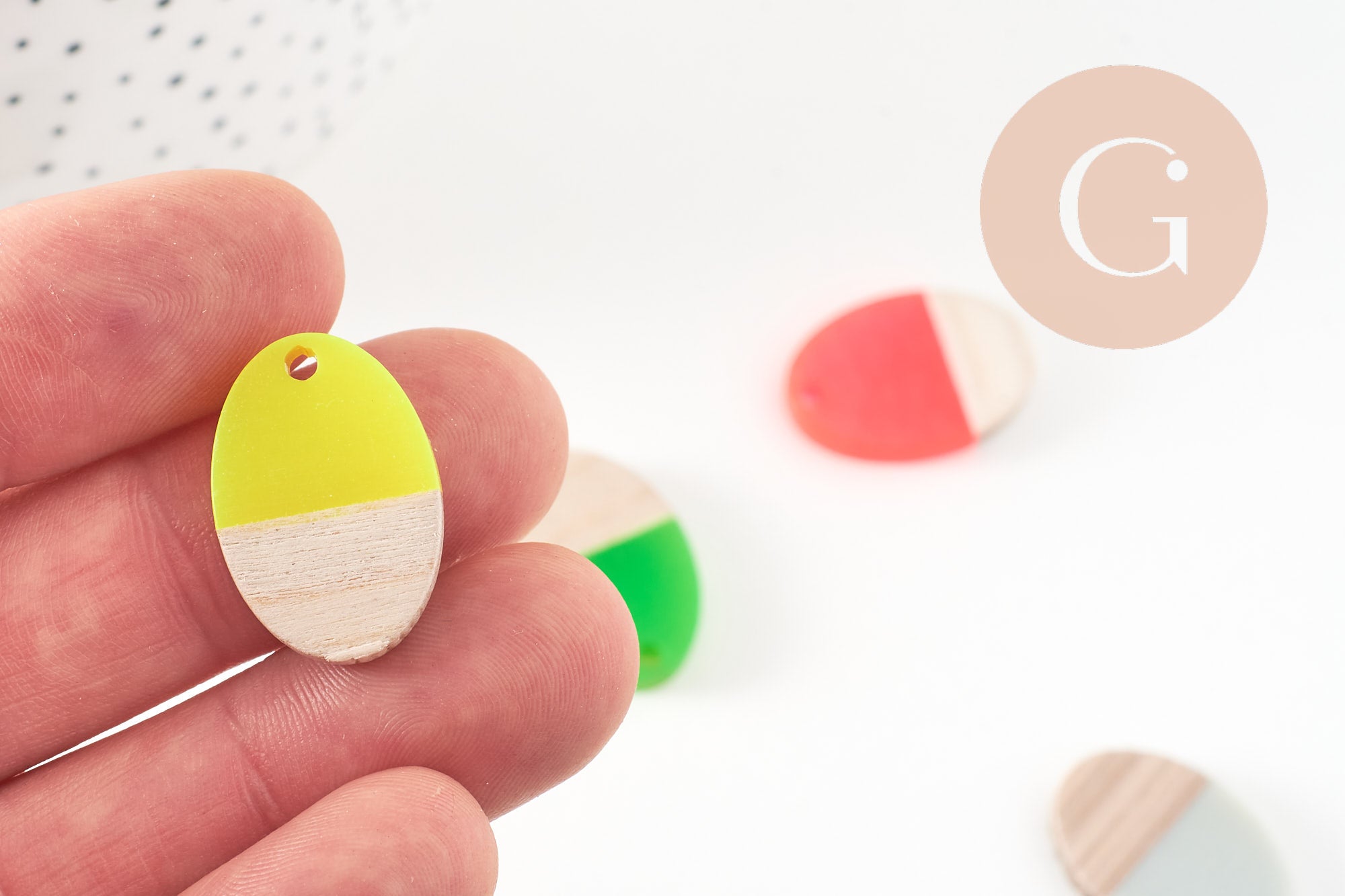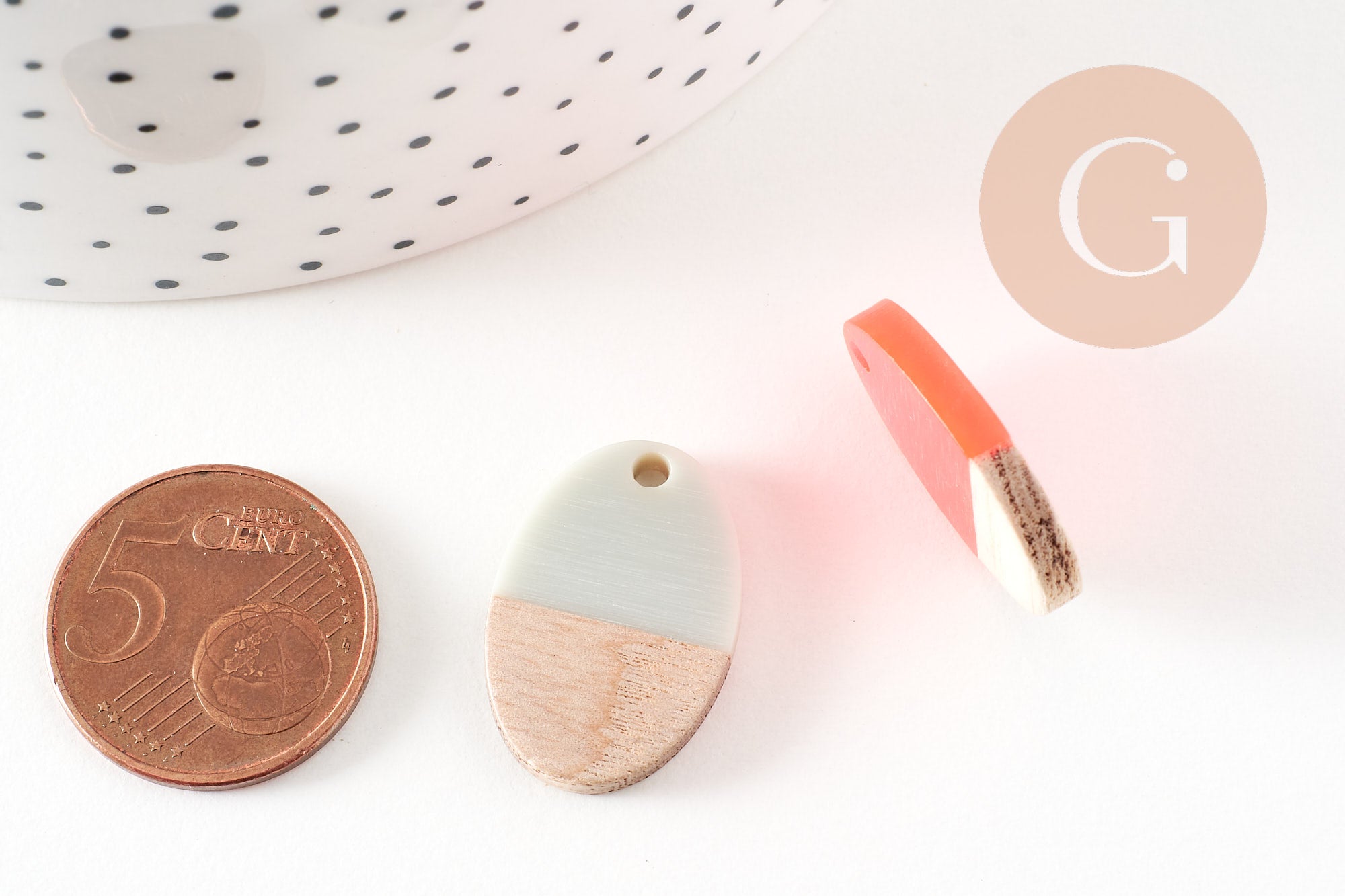 oval pendant wood colored resin, natural wood pearl, geometric pearl, pearl creation wood jewelry, 23mm, 5