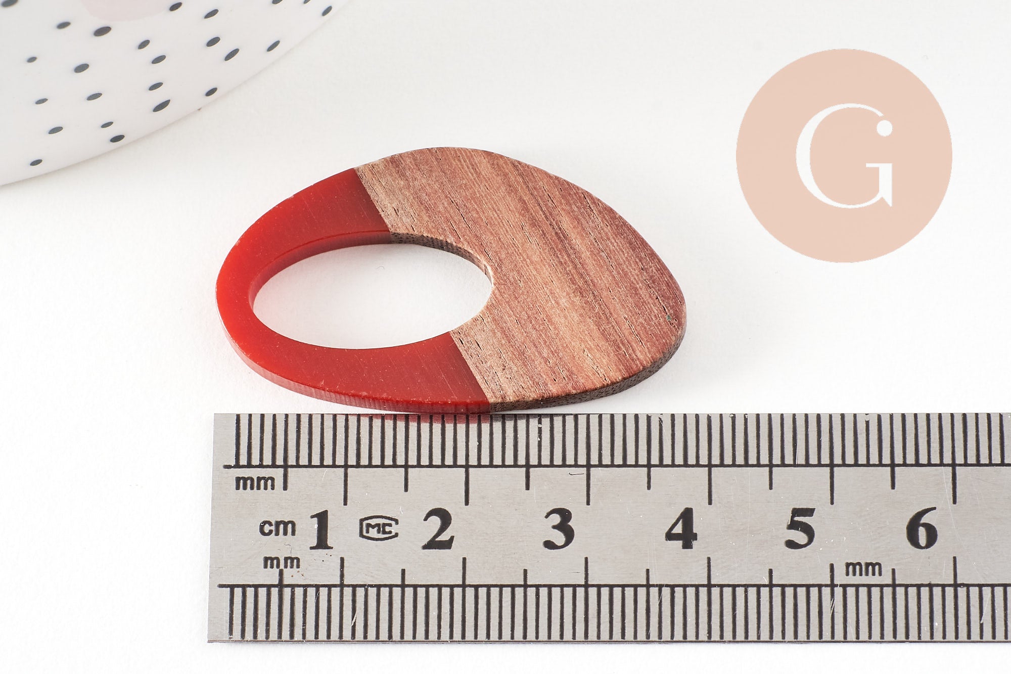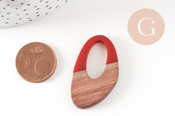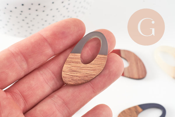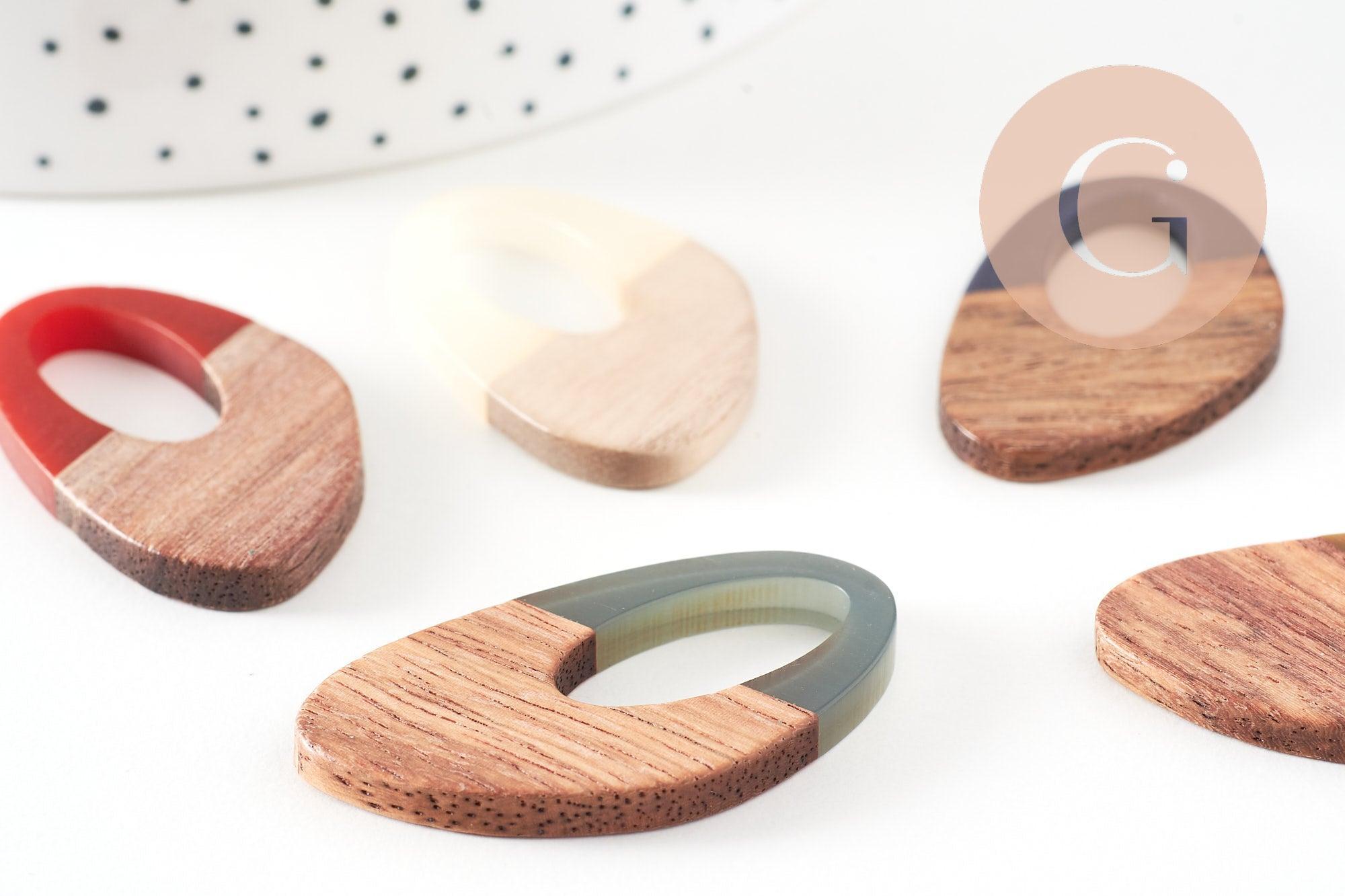 oval wood resin pendant, natural wood bead, geometric bead, wooden jewelry creation bead, 39mm, 5