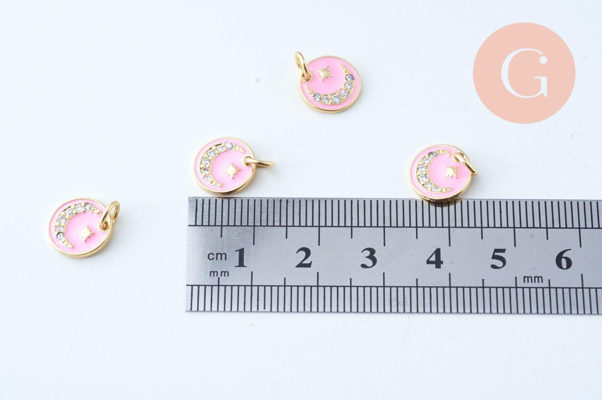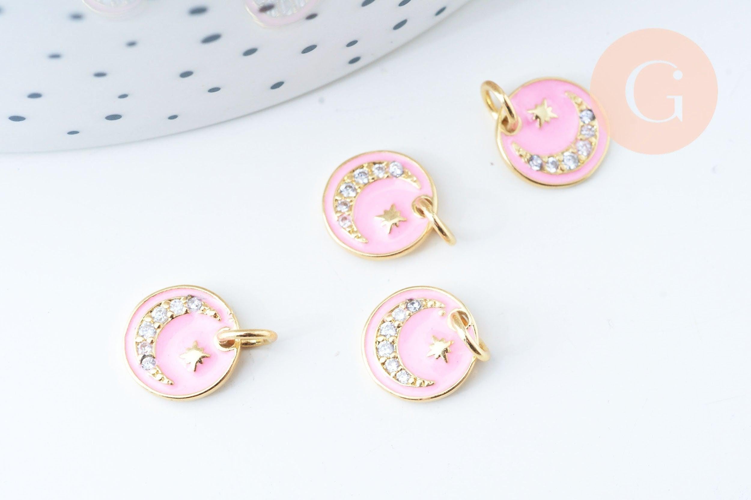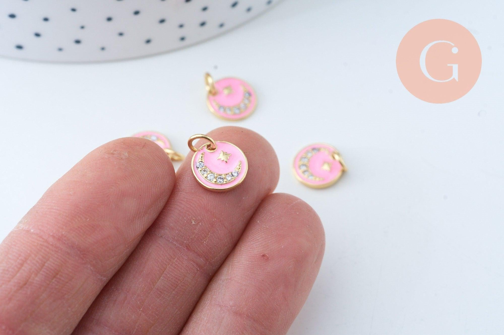 Use this gold-plated moon medal pendant, enameled with pink resin, for your DIY jewelry creations.