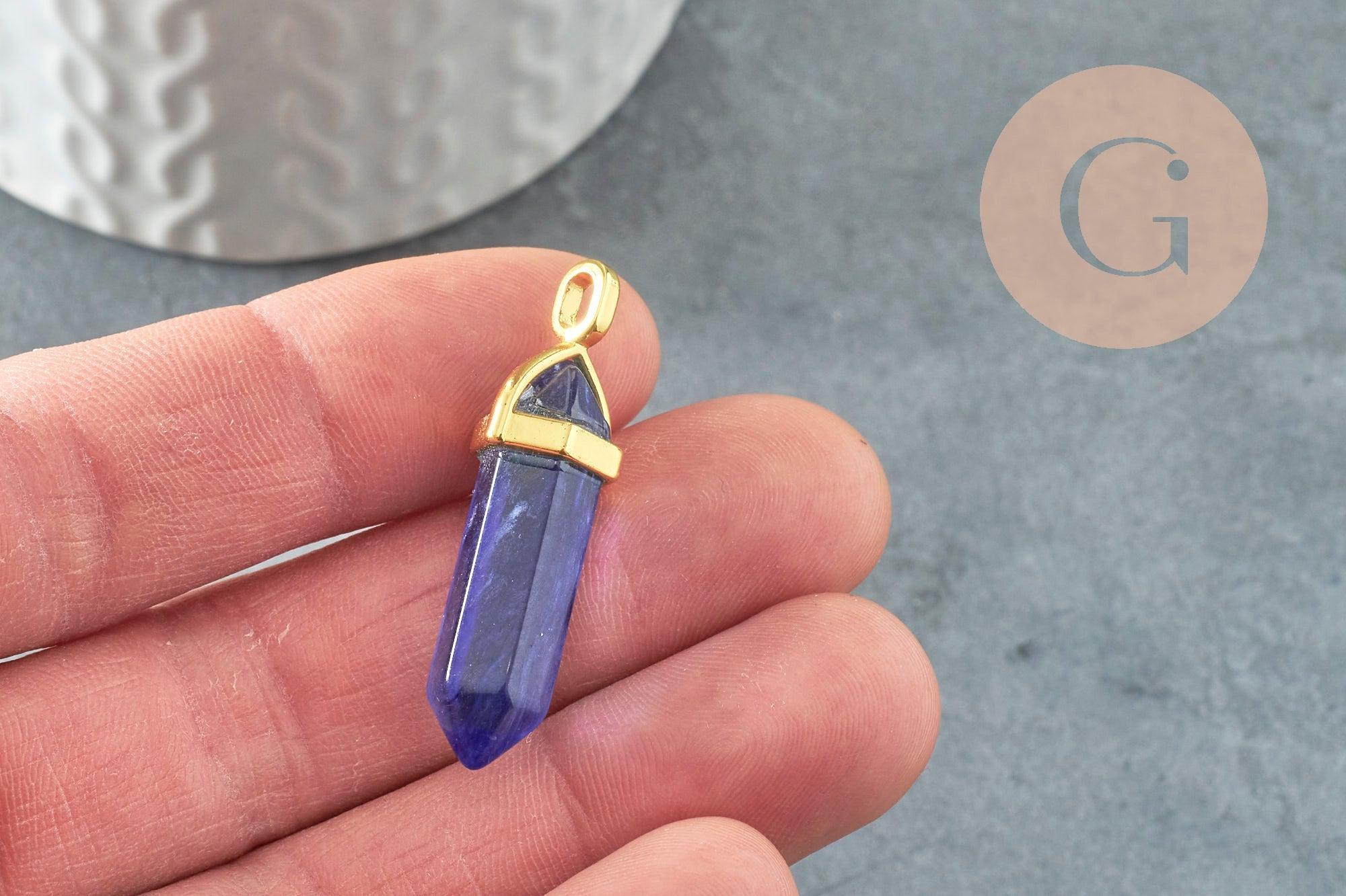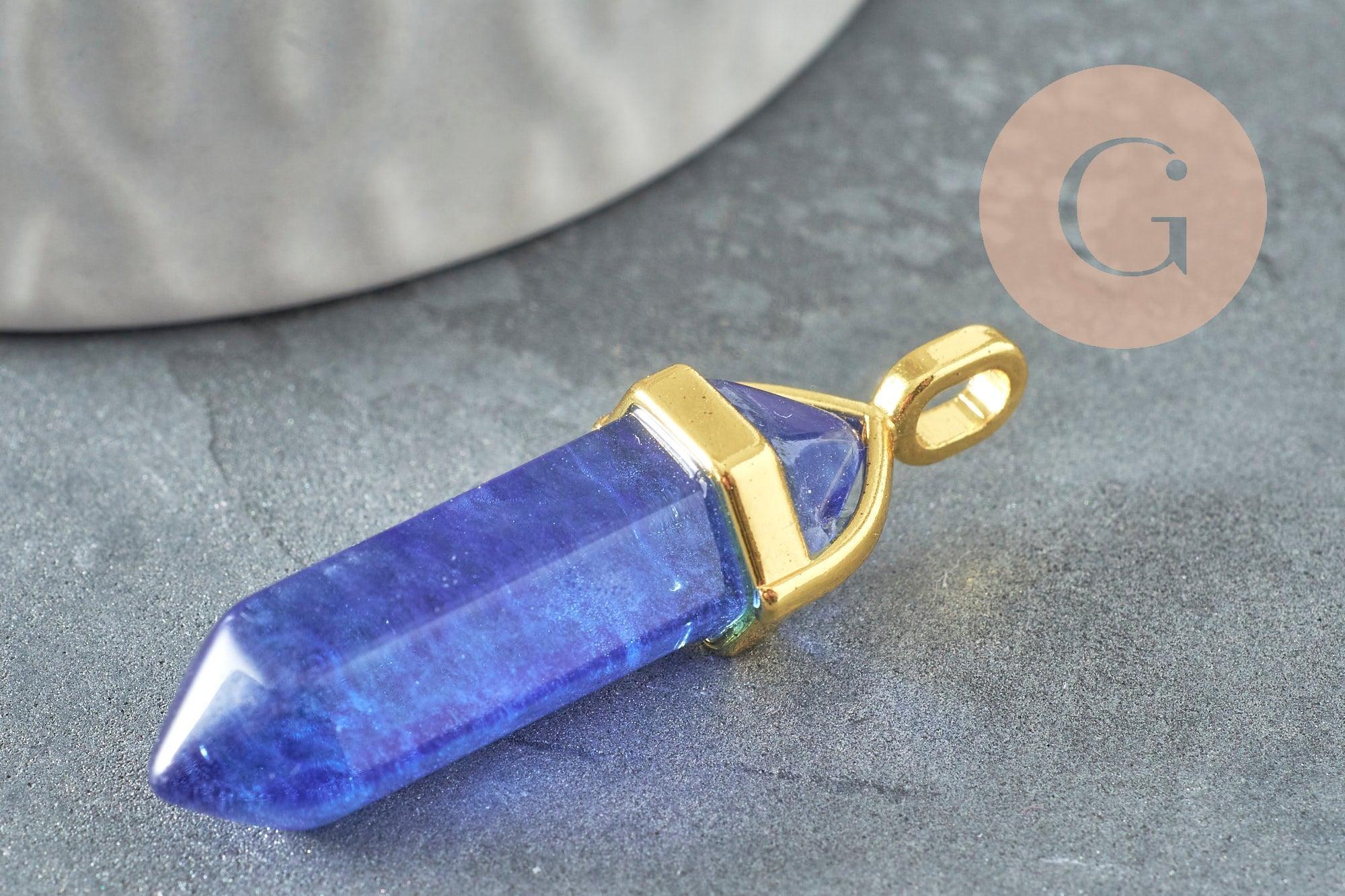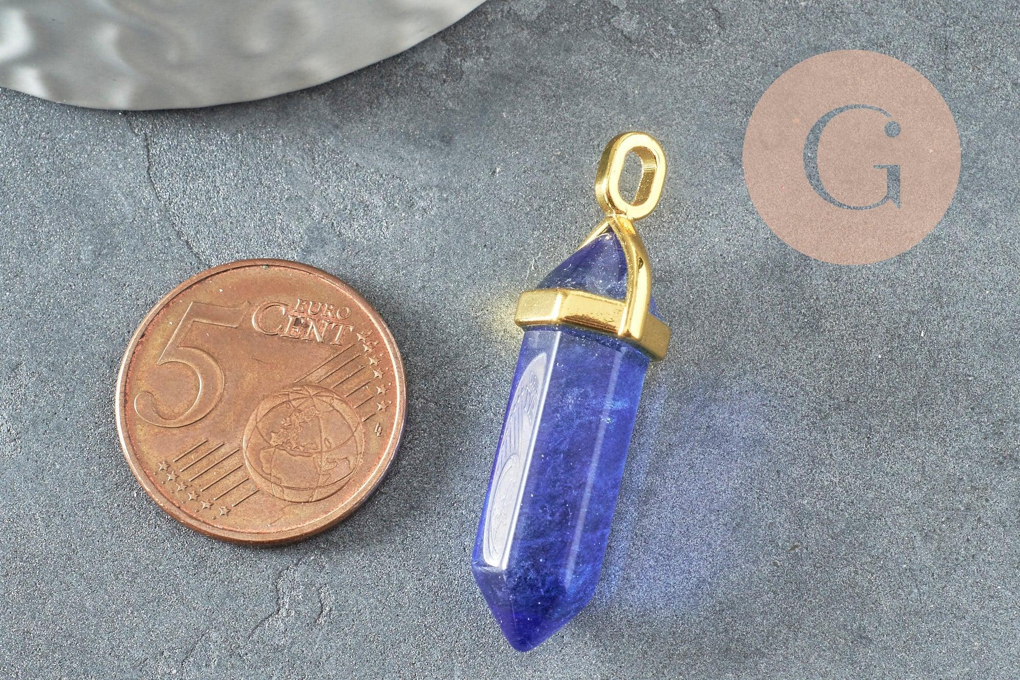 Blue watermelon stone tip pendant in gold-plated zamac 40mm, stone jewelry creation, x1 G5165