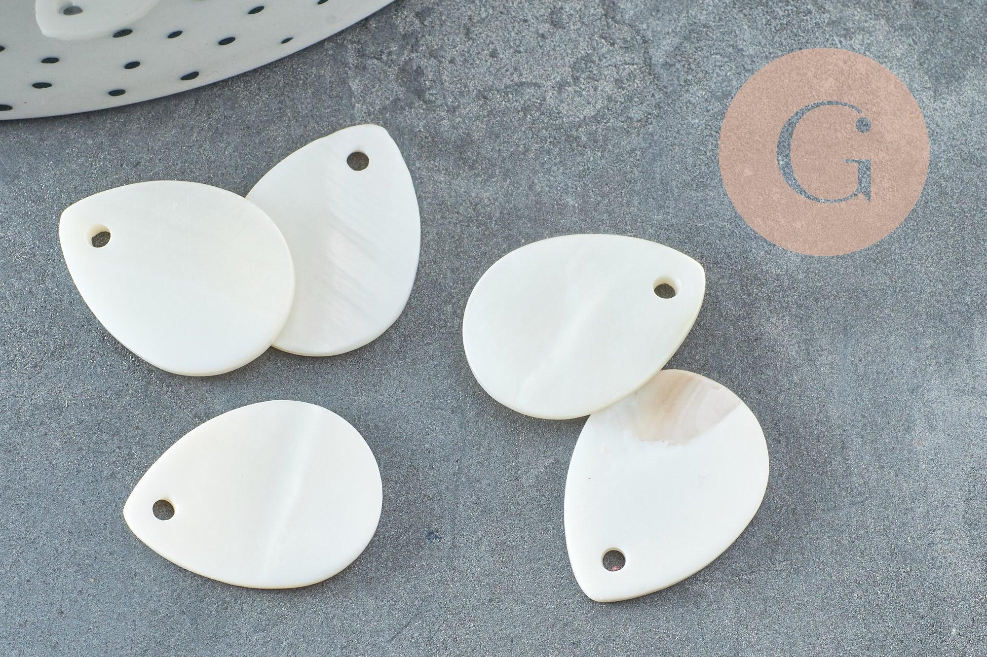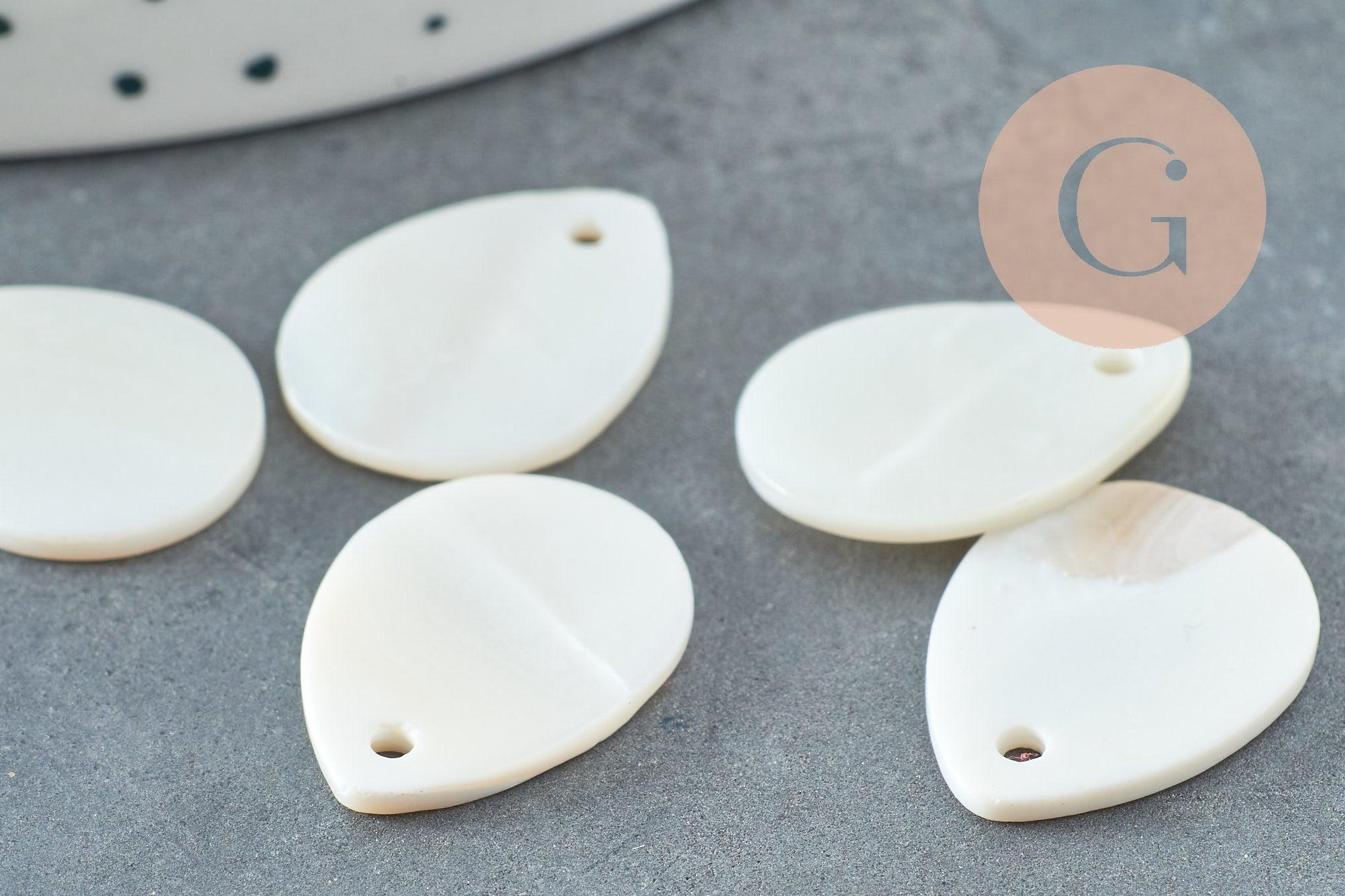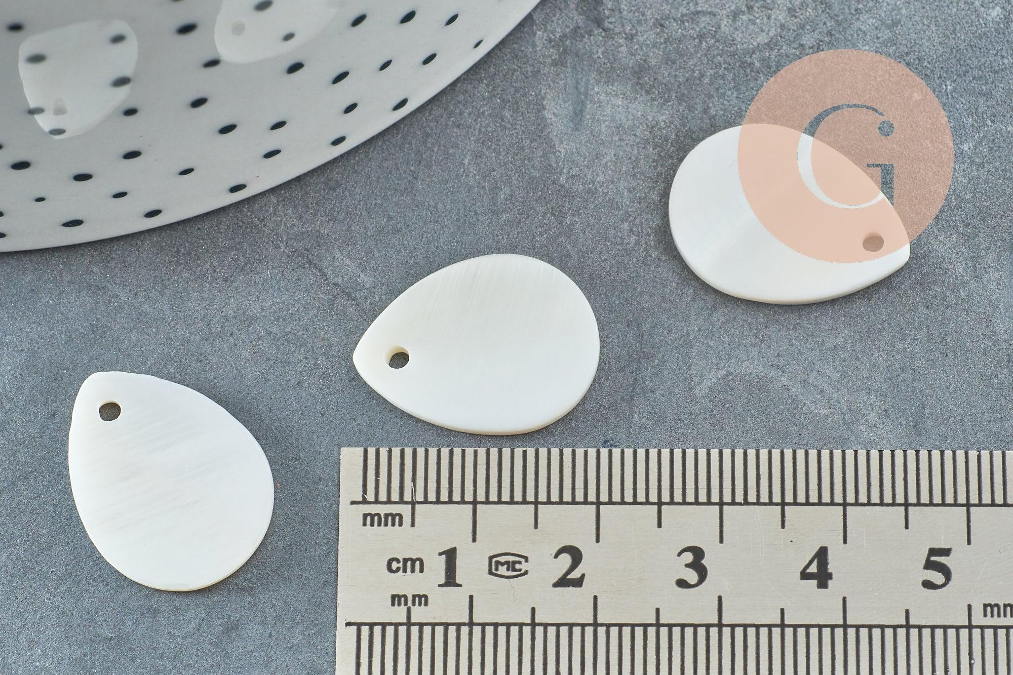 Natural white mother-of-pearl drop pendant, drop pearl, natural mother-of-pearl, white shell, jewelry creation, 20mm, set of 10