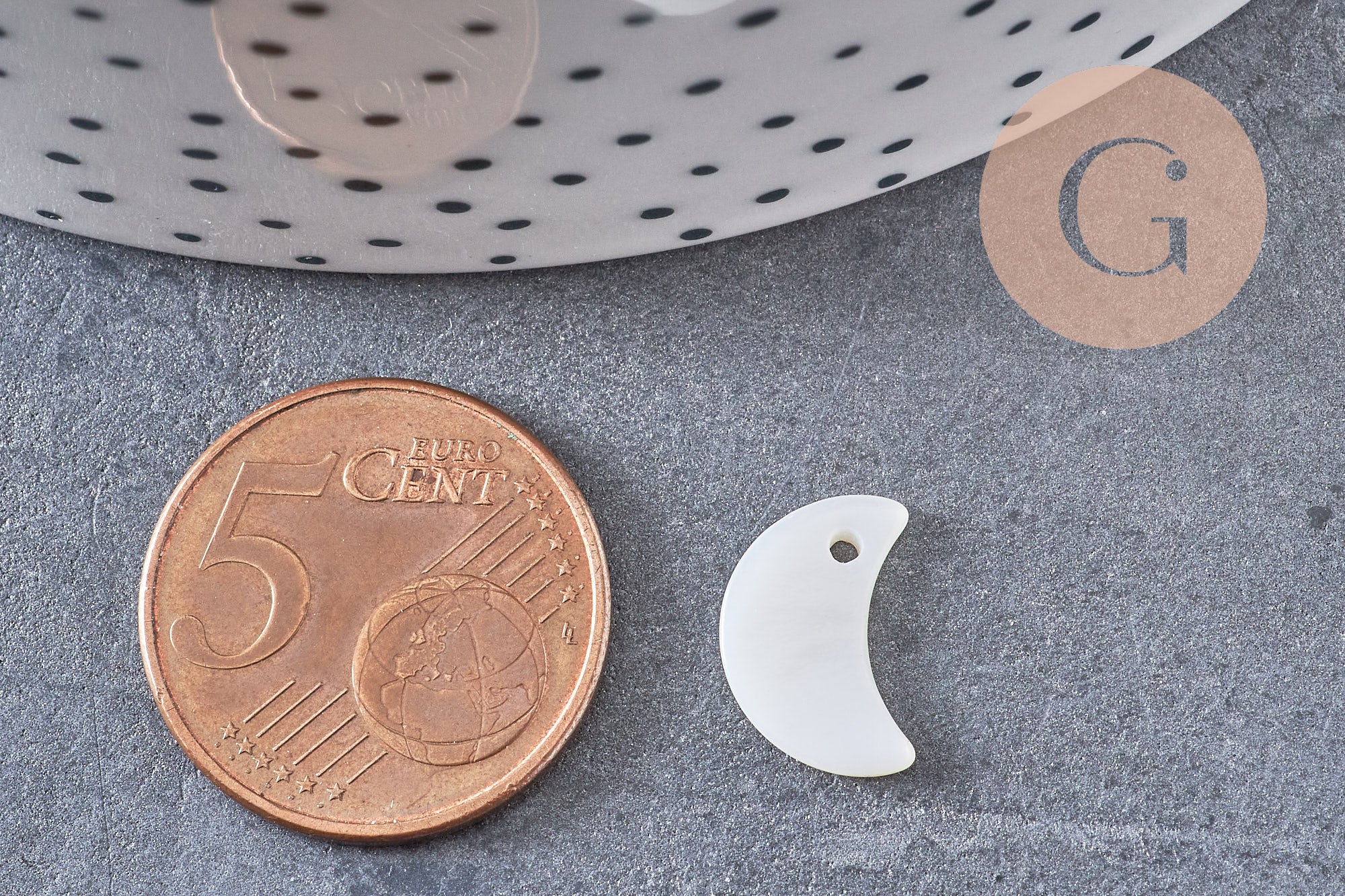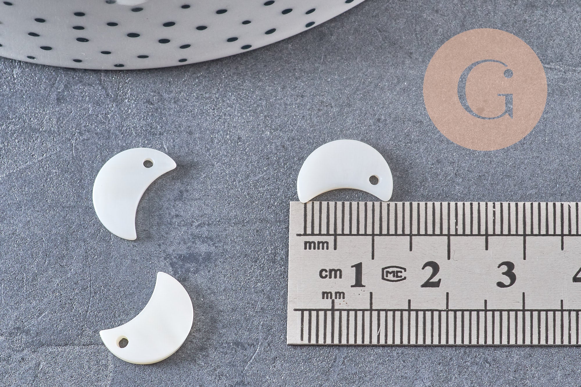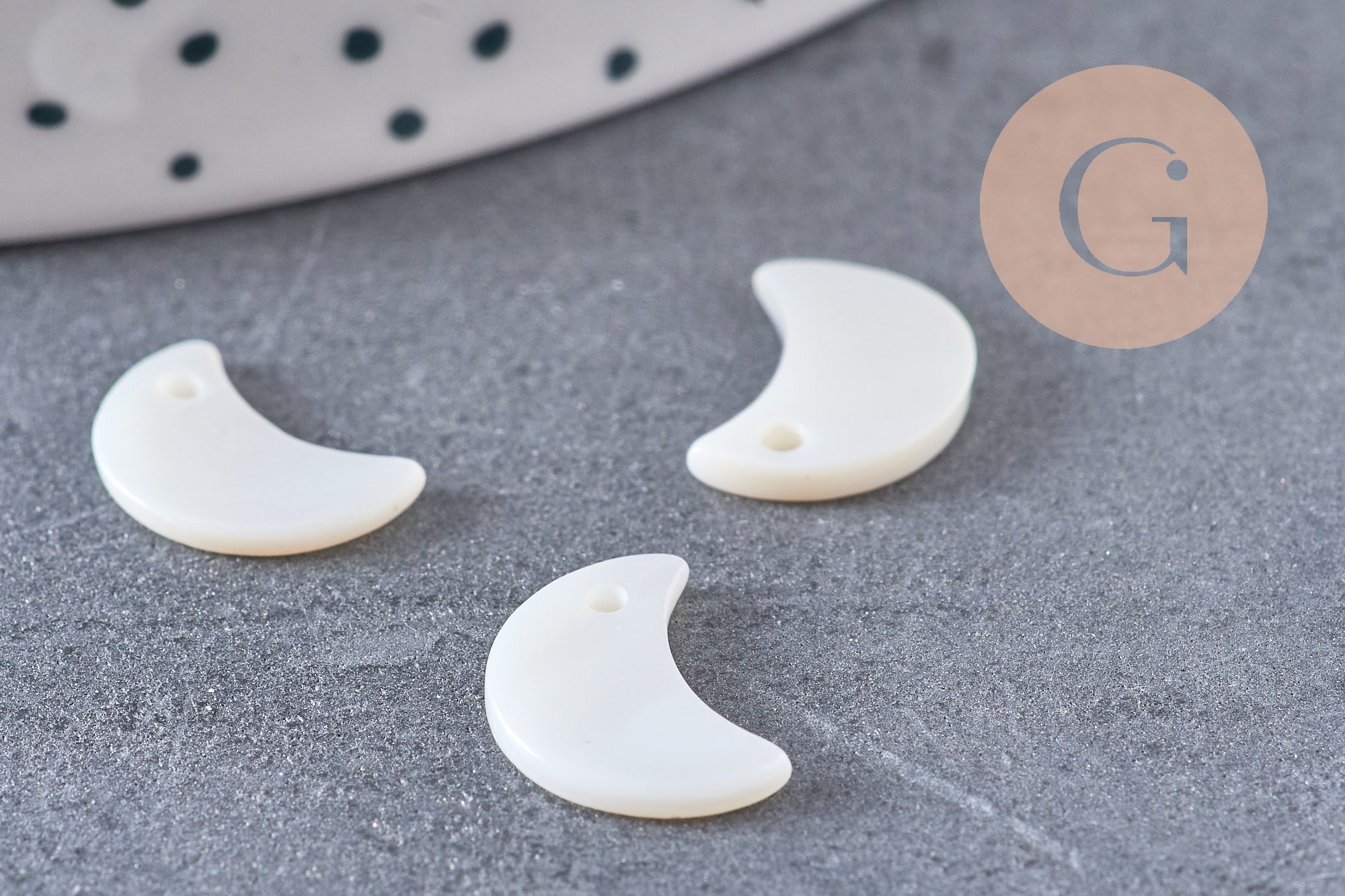 Pendentif Lune nacre blanche naturelle, pendentif lune,bijou nacre,coquillage blanc, création bijoux, 13mm, X10 (G0905)