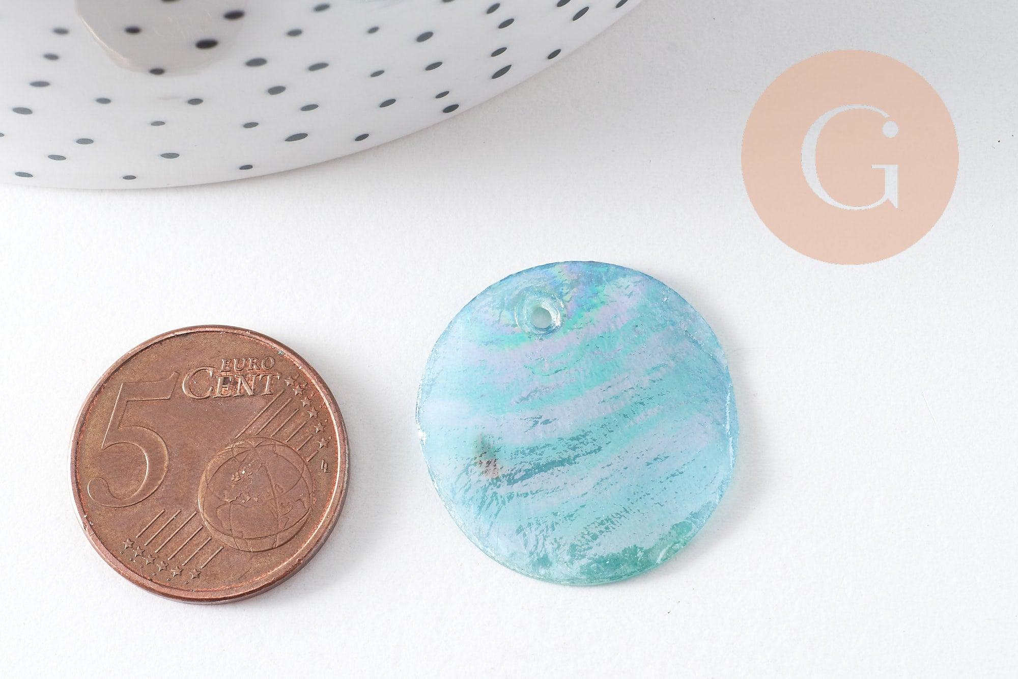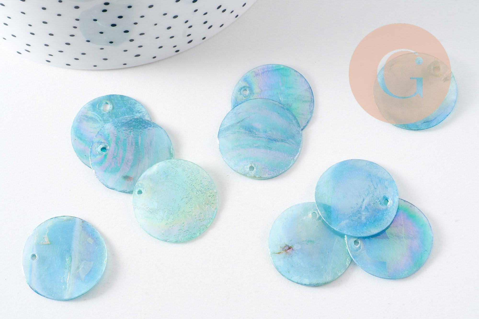 Fall in love with this set of 10 round pendants made of natural mother-of-pearl tinted a deep iridescent blue . Each disc offers a shimmering glow with turquoise and marine reflections, perfect for infusing your jewelry creations with an oceanic and bohemian vibe. Their flat, lightweight shape makes them ideal for incorporating into elegant, summery, or refined compositions.