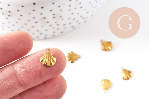 Breloque coquillage laiton, breloques laiton brut , pendentif bijoux,sans nickel, 10mm , x10 G0192
