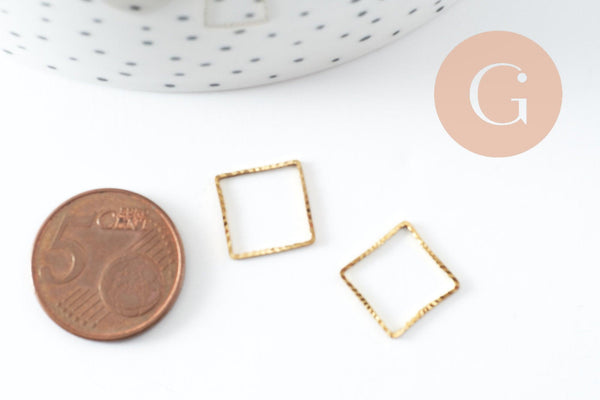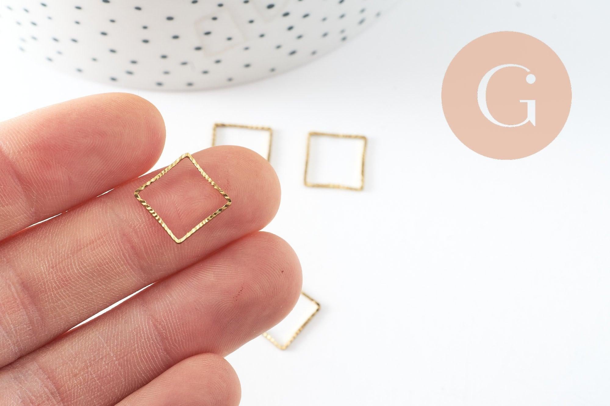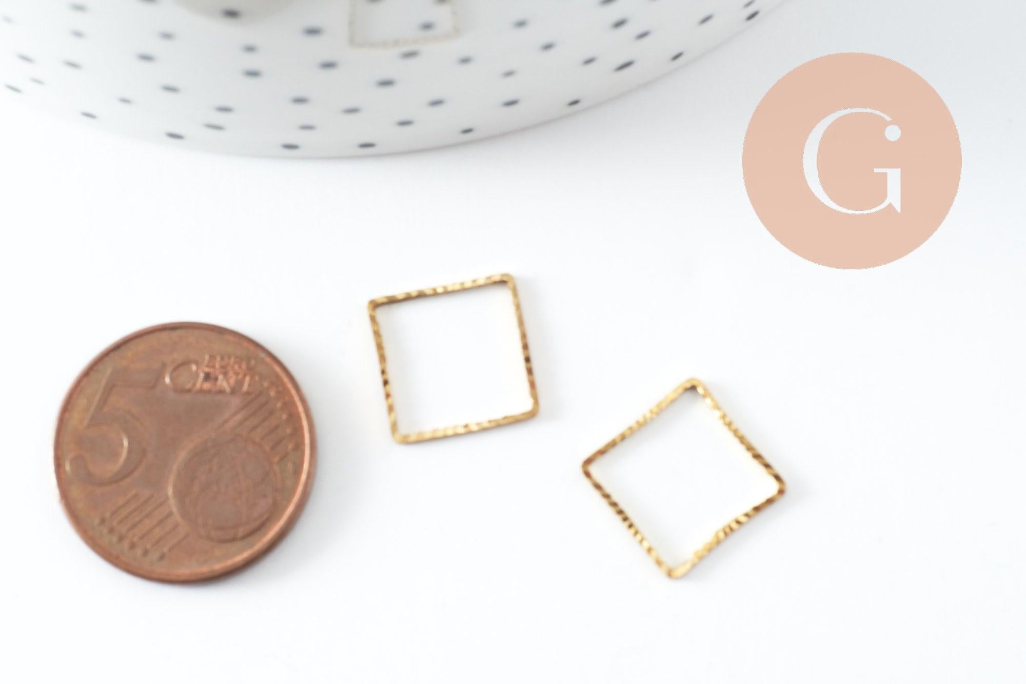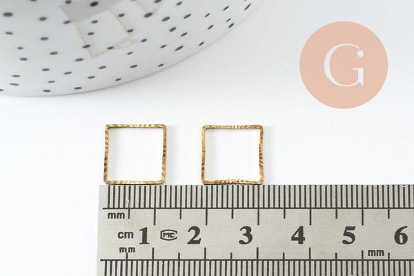 Connecteur carre laiton brut strié 12mm, pendentif géométrique création bijoux, x50 (G1468)