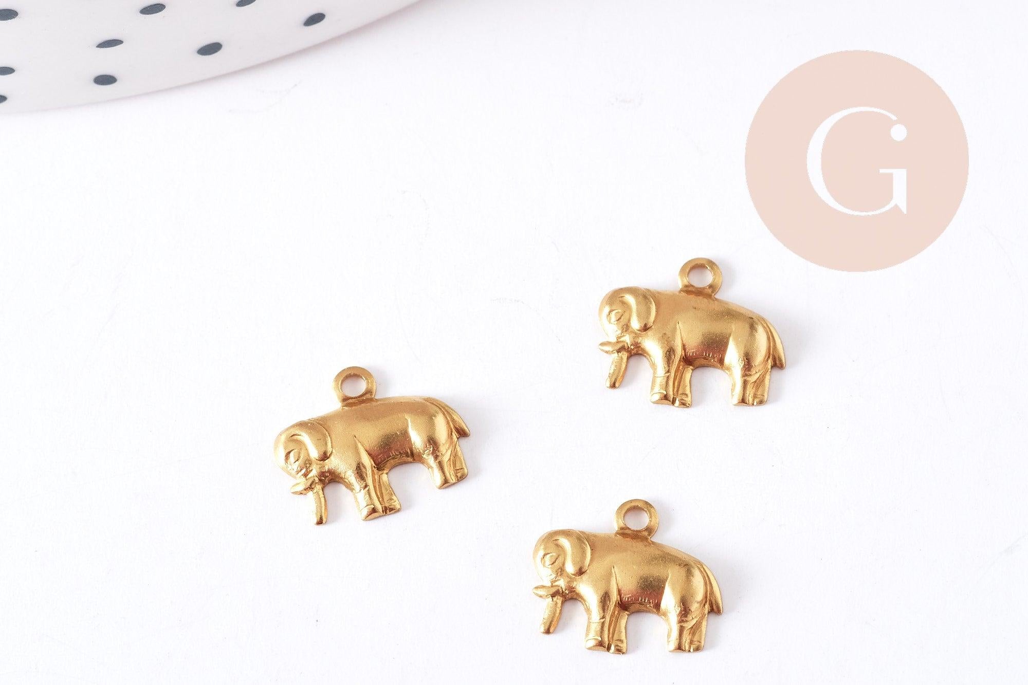 Breloque éléphant laiton brut 12mm, breloque animal sauvage création bijoux x2 G8208