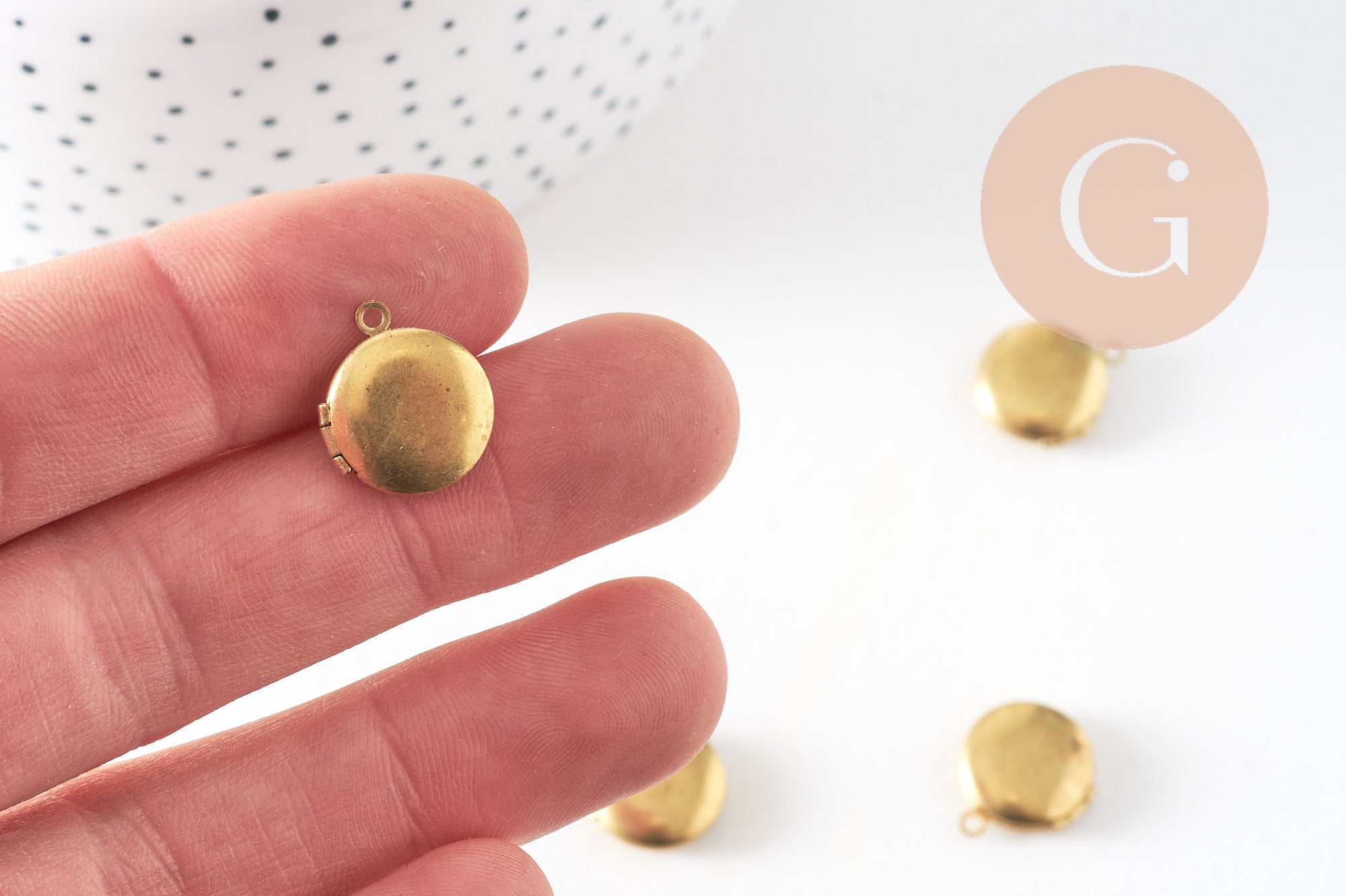 A pretty round pendant in golden brass.