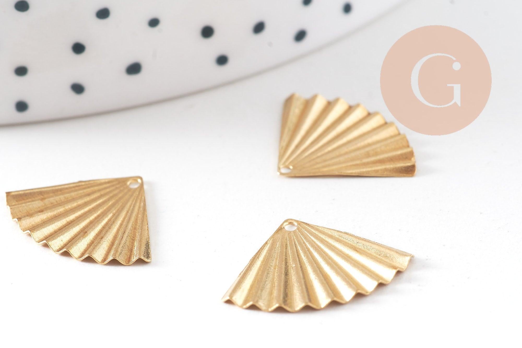 Raw brass folded fan triangle pendant, gold-plated finish, nickel-free, Gold-plated pendant, raw brass, 19mm, set of 5