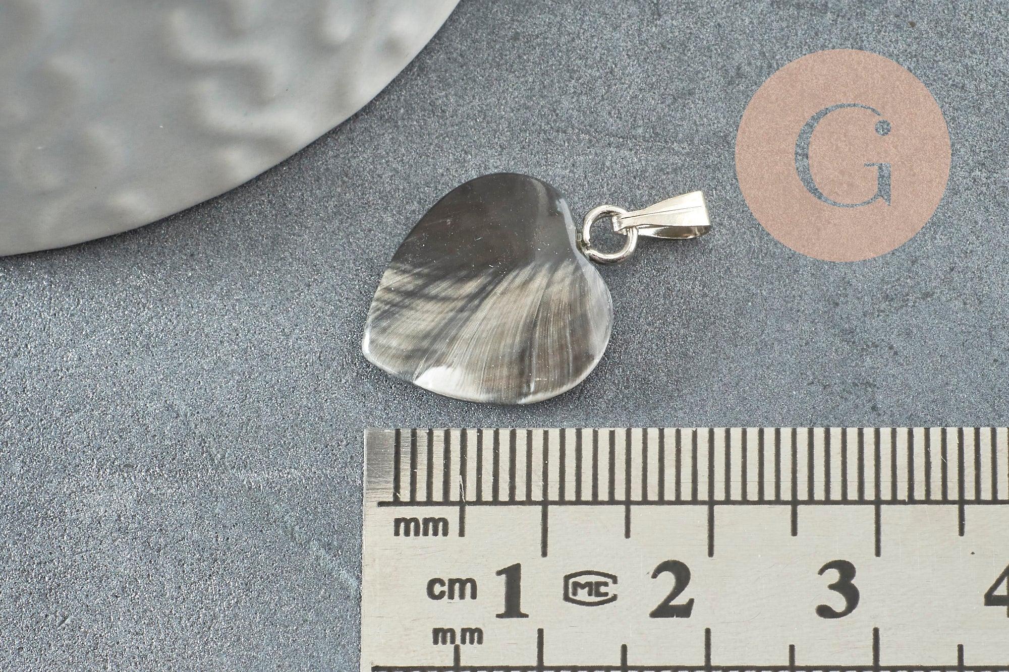 Fall for this heart pendant in natural black mother-of-pearl with a small crystal in the center, on a silver support, platinum color