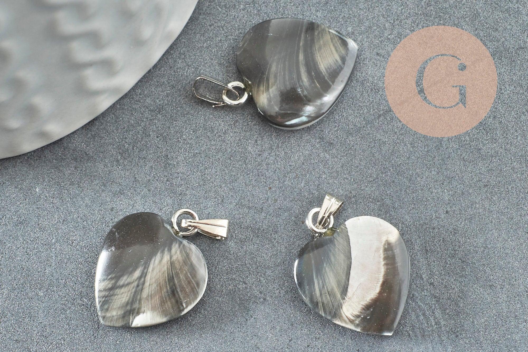 Natural black white platinum heart pendant, creative supply, heart pendant, mother-of-pearl heart, black shell, jewelry creation, 17-19mm