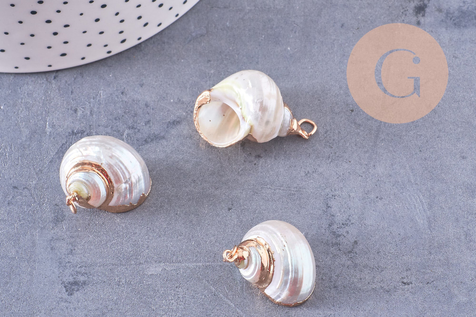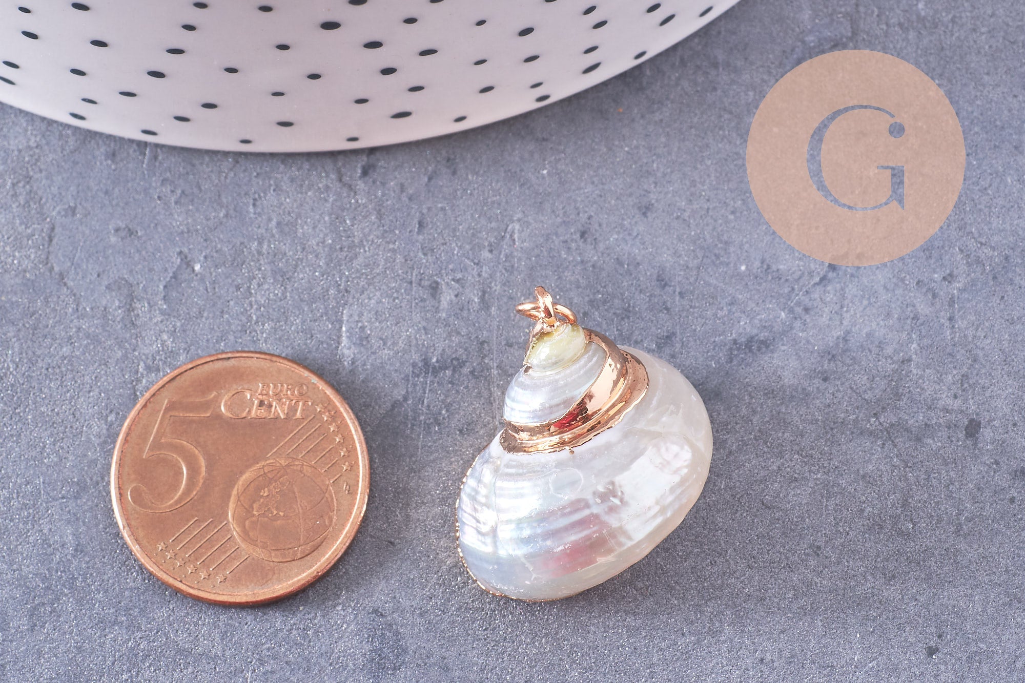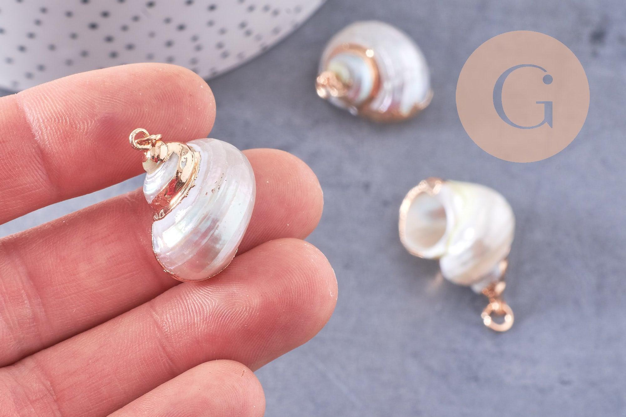 Add a summery, natural touch to your creations with this genuine Conch shell pendant, edged with a shiny gold finish . Each shell is unique, with its light beige shades and organic texture, for original, sea-inspired DIY jewelry.