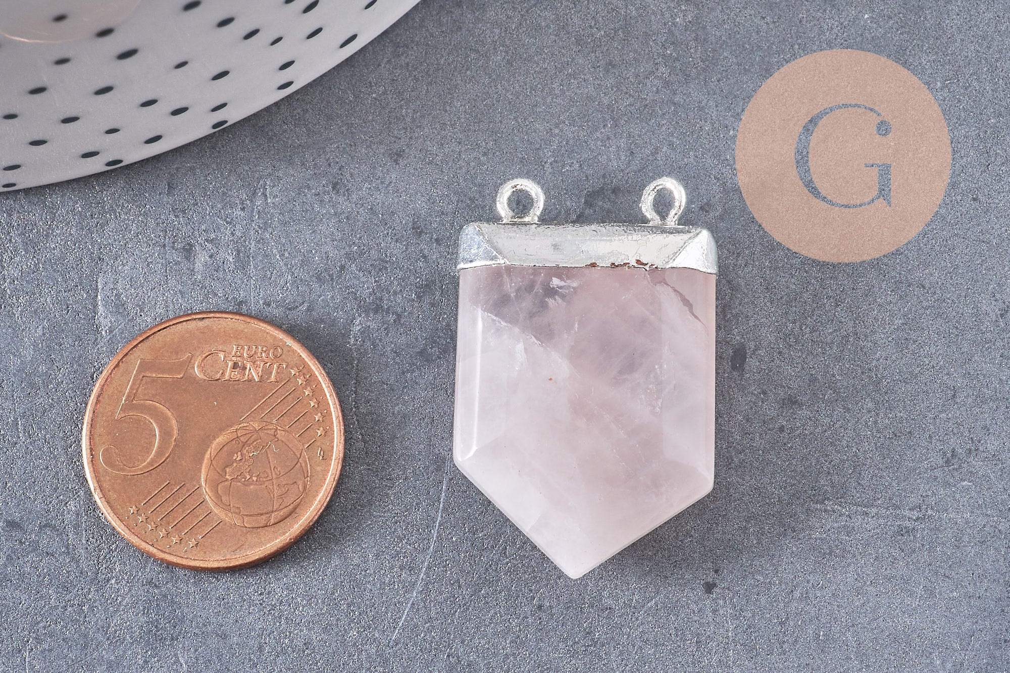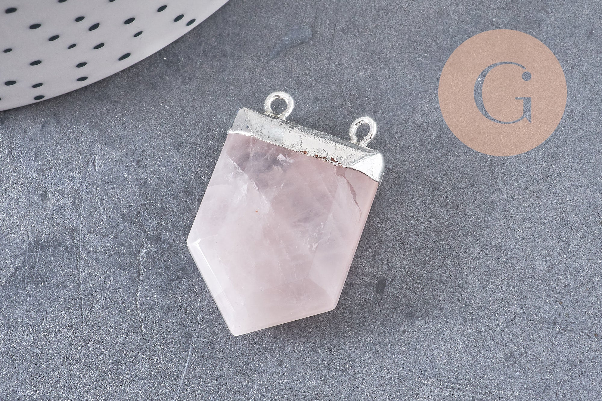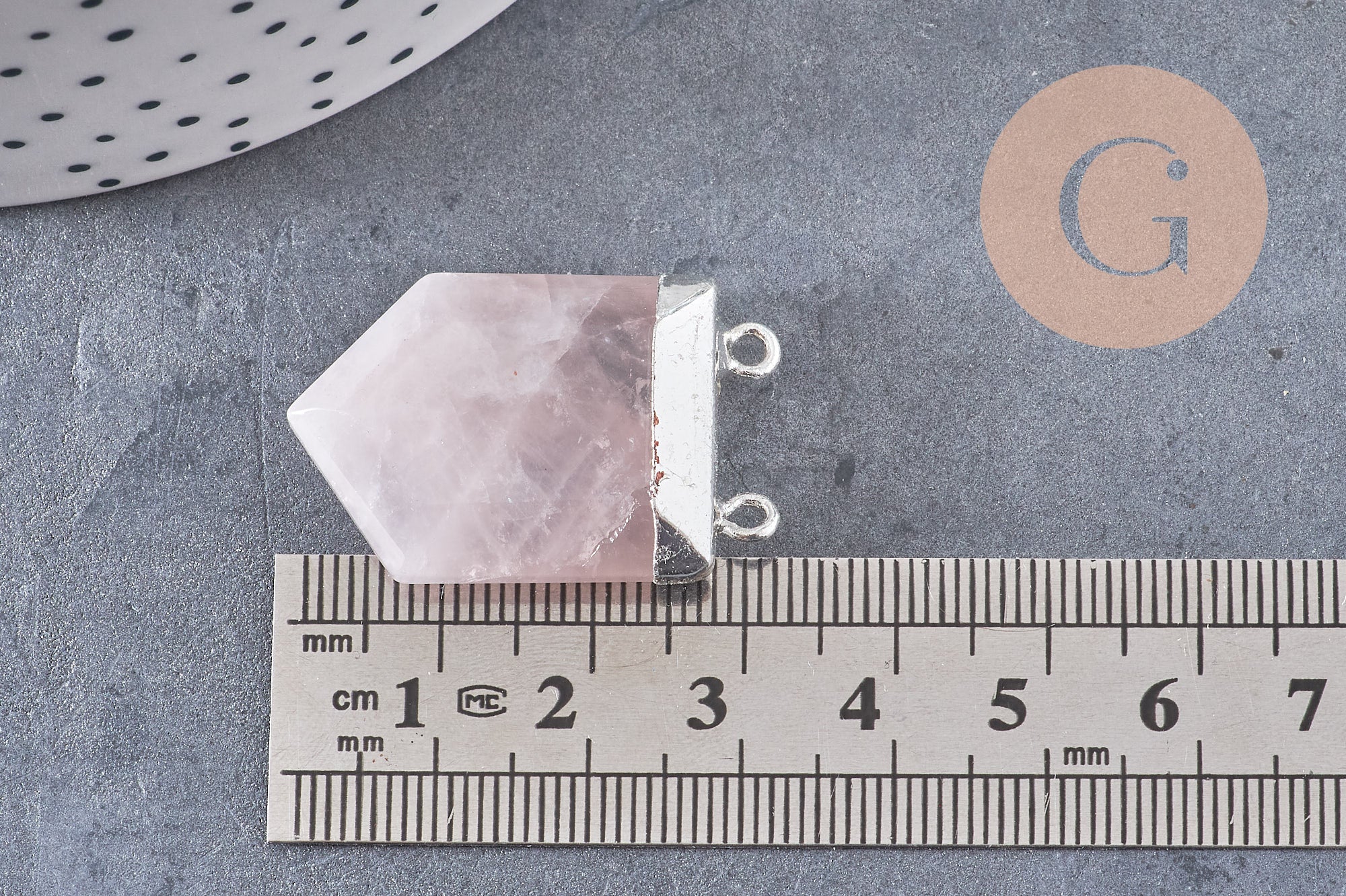 Silver hexagon rose quartz pendant, stone jewelry pendant, stone pendant, natural rose quartz, rose quartz pendant, 28mm