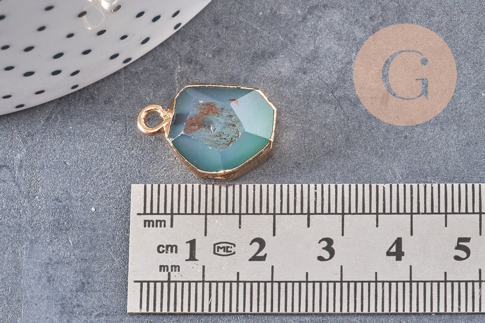 Pendentif agate naturelle verte laiton doré 17-22mm, x1 (G2619)
