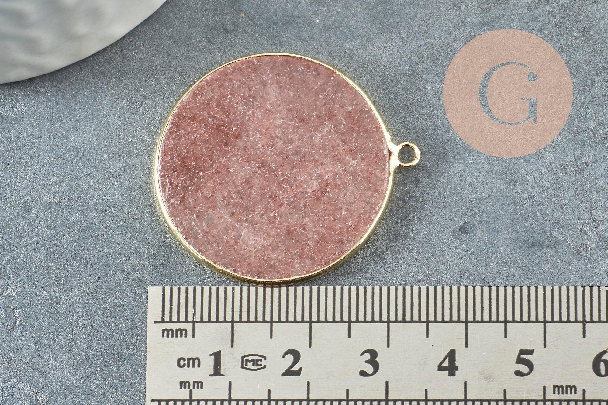 Round strawberry quartz pendant, jewelry pendant, stone pendant, natural stone, pink pendant, natural quartz, 32mm, unit