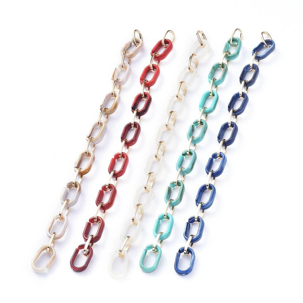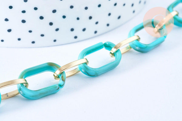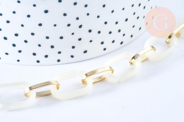 This chain combines the lightness of acrylic and the shine of gold-plated metal , for a high-end look while remaining comfortable to wear.