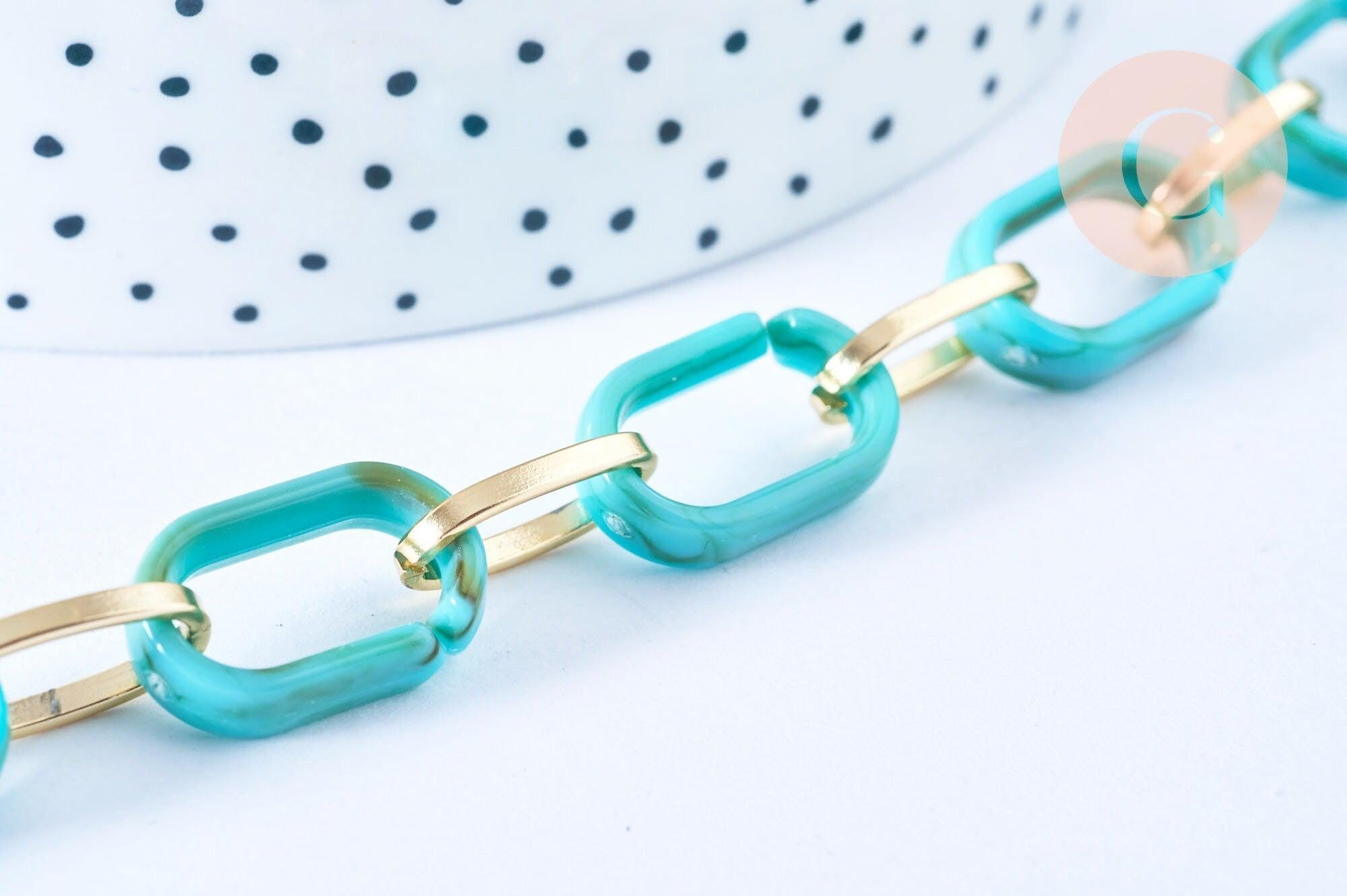 Add a modern and bold touch to your creations with this large round acrylic chain with a scale effect , linked by textured gold aluminum links .