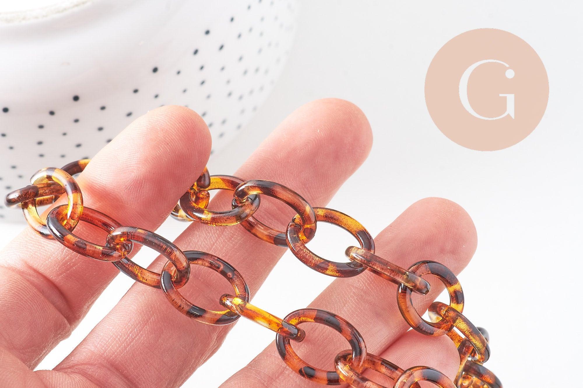 A large acrylic plastic chain with a leopard pattern to create modern and offbeat jewelry.