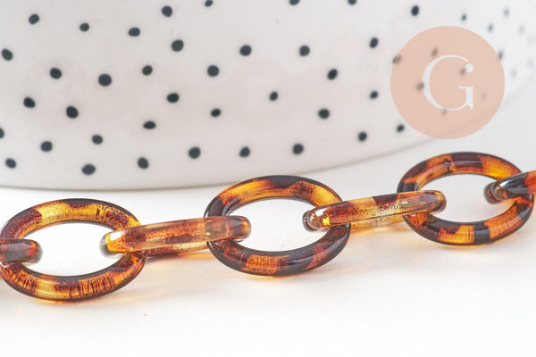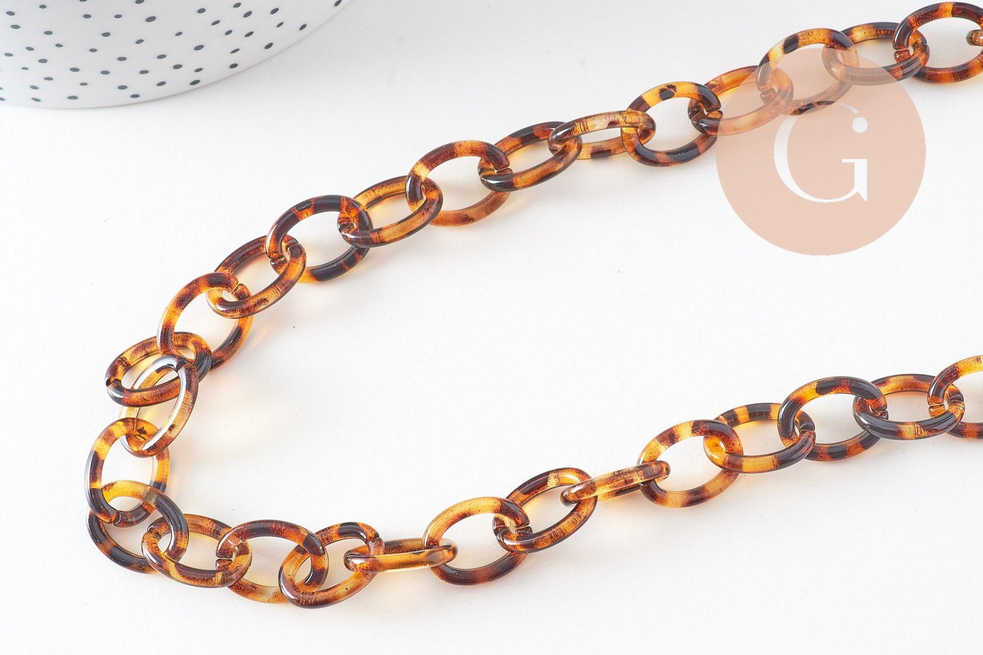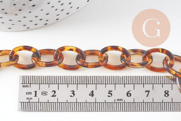 Large round chain in leopard acrylic scale 17.5mm, telephone jewelry creation, plastic chain, x 1 meter (G2961)