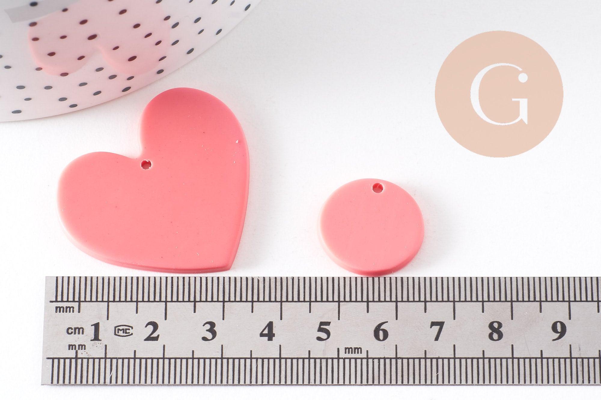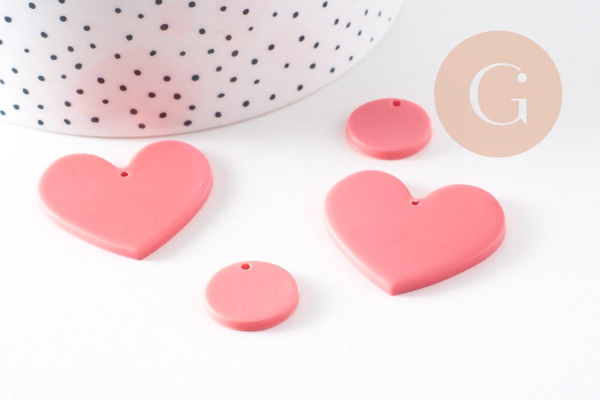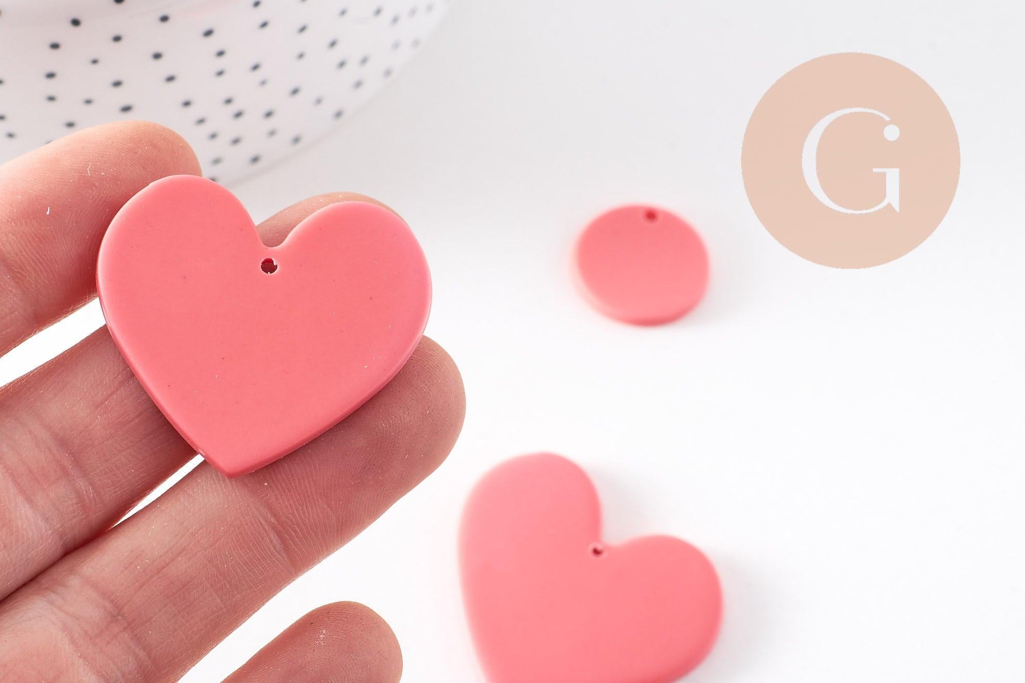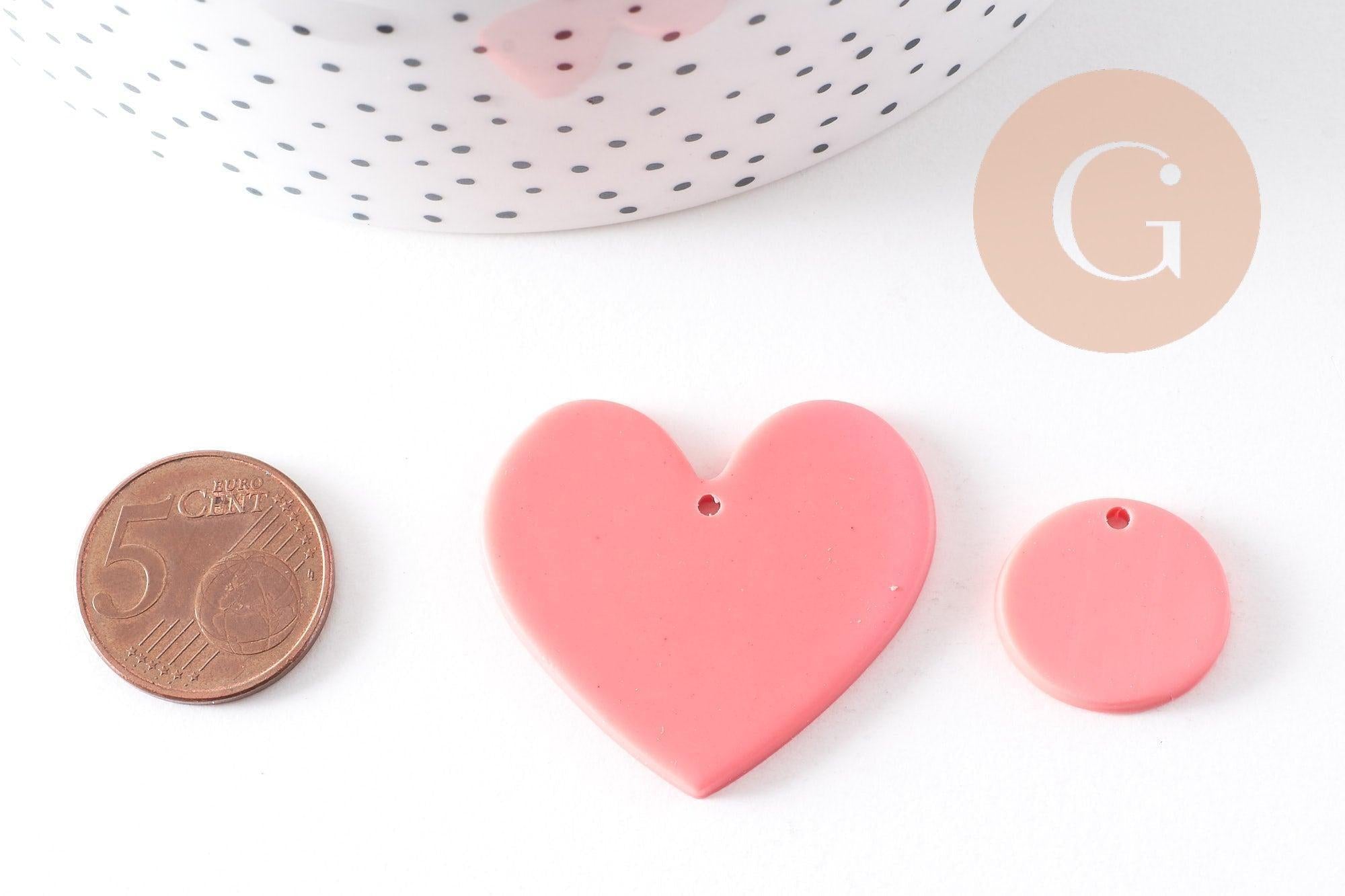 Add a pop and original touch to your DIY creations with this duo of handmade polymer clay pendants , composed of a heart and a flat circle in a bright fuchsia pink . Perfect for creating fun, colorful and unique jewelry, these elements will bring a beautiful touch of modernity to your earrings, necklaces or long necklaces.