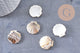 Disc-shaped beads in wood and resin in marbled colors that can make very pretty pendants or complete earrings in an arty spirit.
