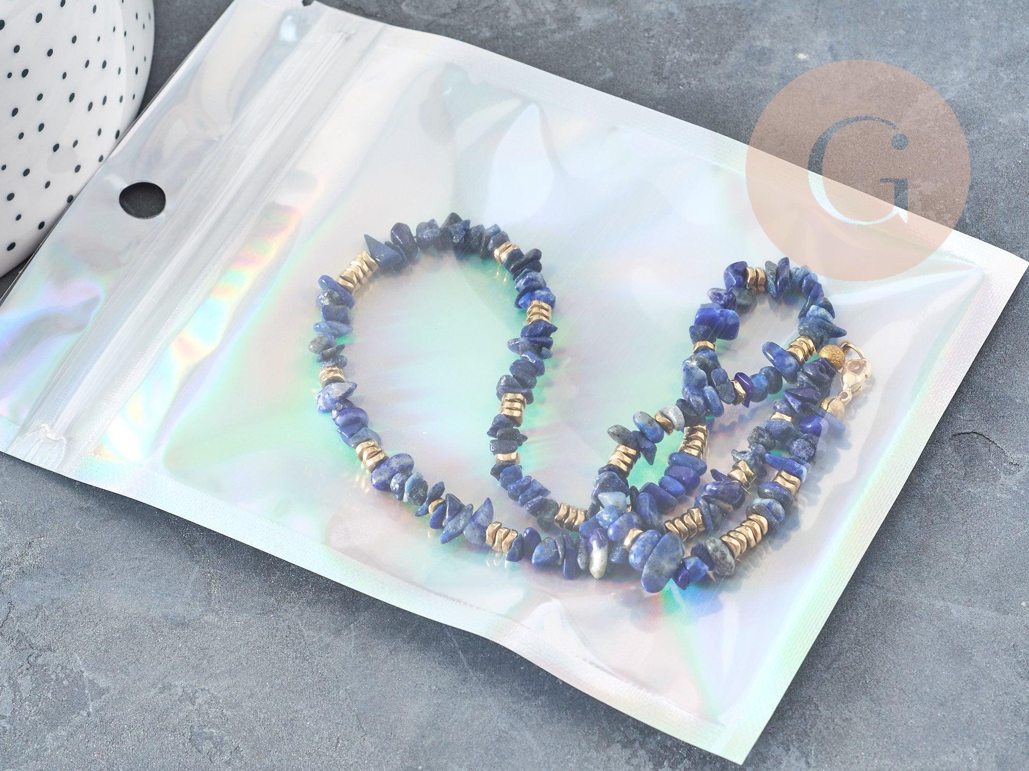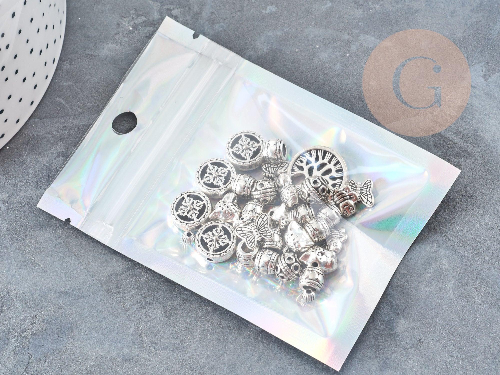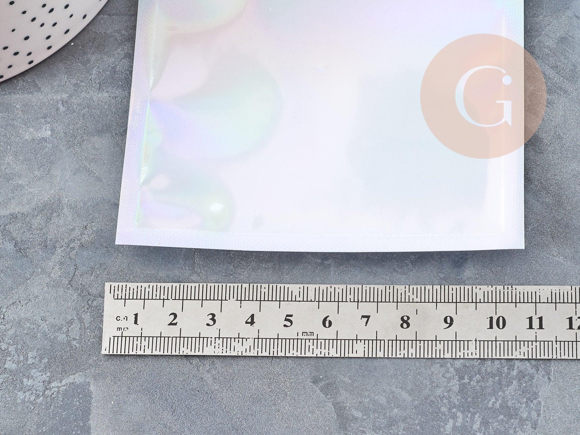 Add a touch of sparkle and elegance to your organization with this set of 5 rectangular 10x7 cm gray holographic plastic zip bags . Both functional and aesthetic, these bags are ideal for storing, packaging or presenting small precious items in a modern and professional style.