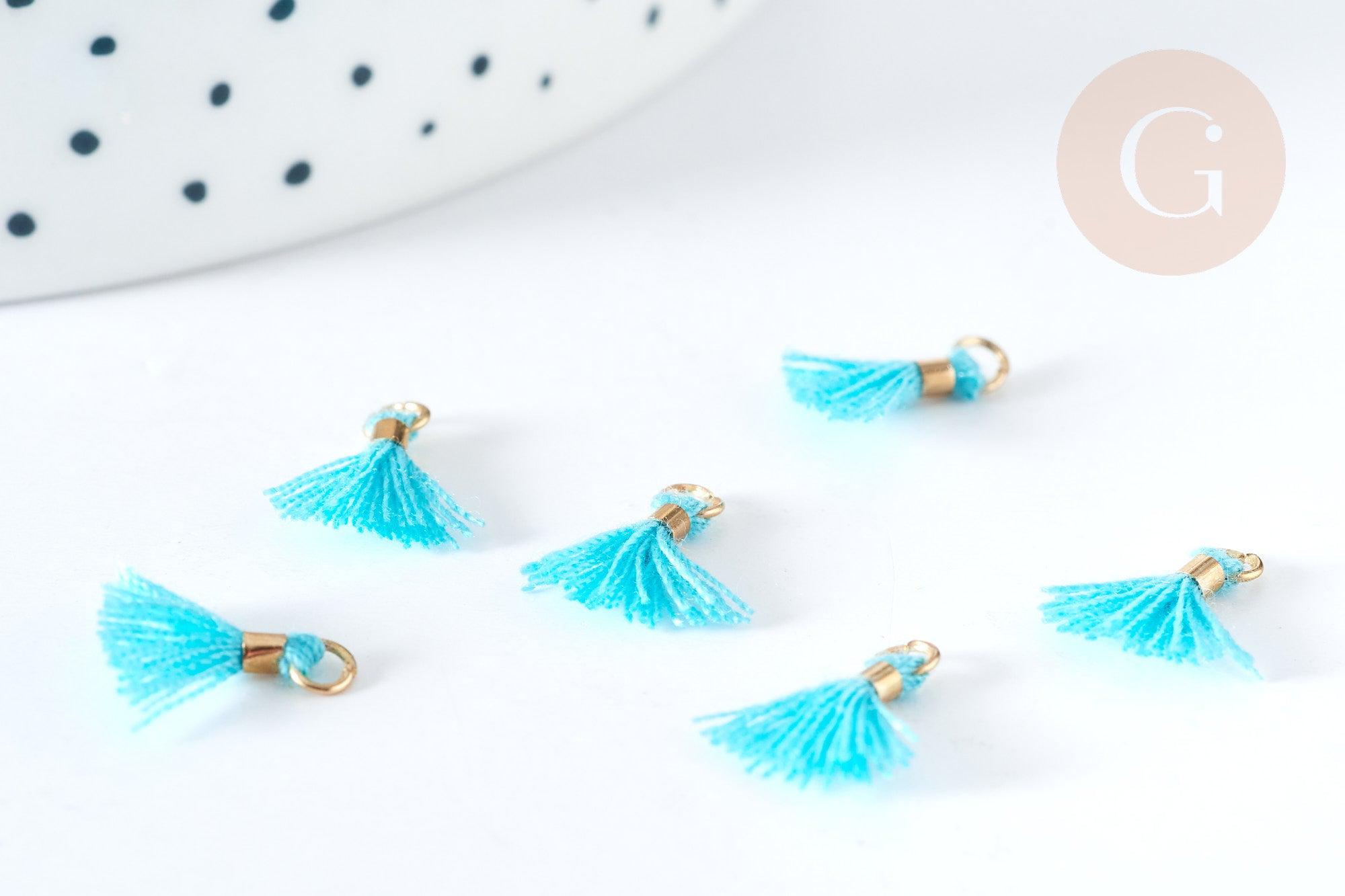 A set of 10 blue polyester pompoms with a gold base to add some pep to your jewelry